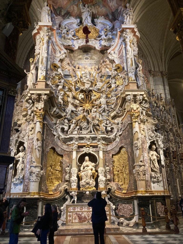 The focus on Toledo was about seven significant sites, that we would visit on foot. First up: the Iglesia San Tome. As was to be the case throughout the visit, locating was a bit of a challenge: the maps were too little detailed and more an approximation than an accurate picture and the cobbled streets & passageways wound up & down & all around. We had two maps, and by combining them, managed to avoid getting too geographically embarrassed!