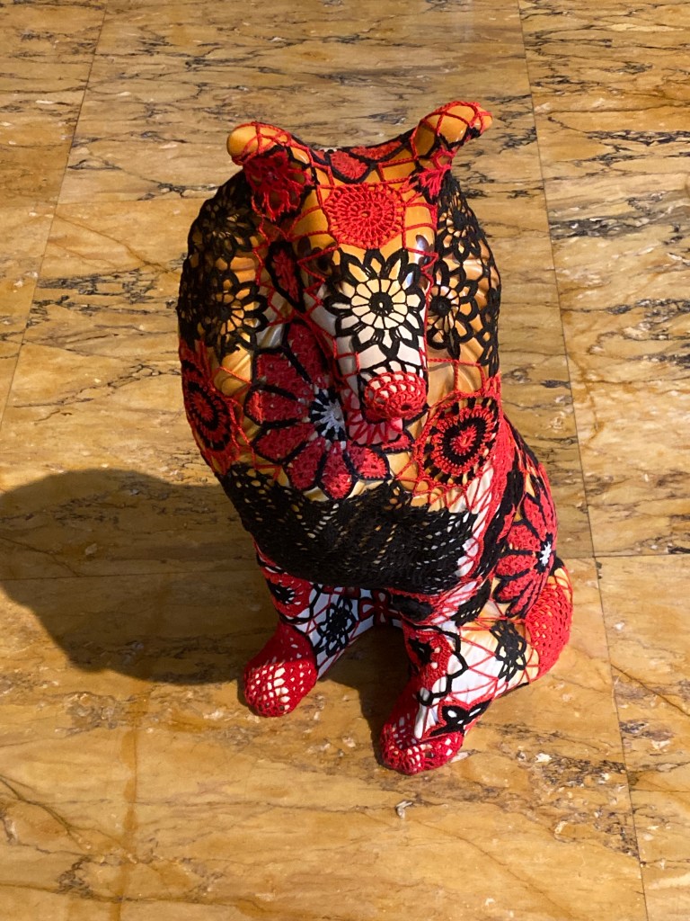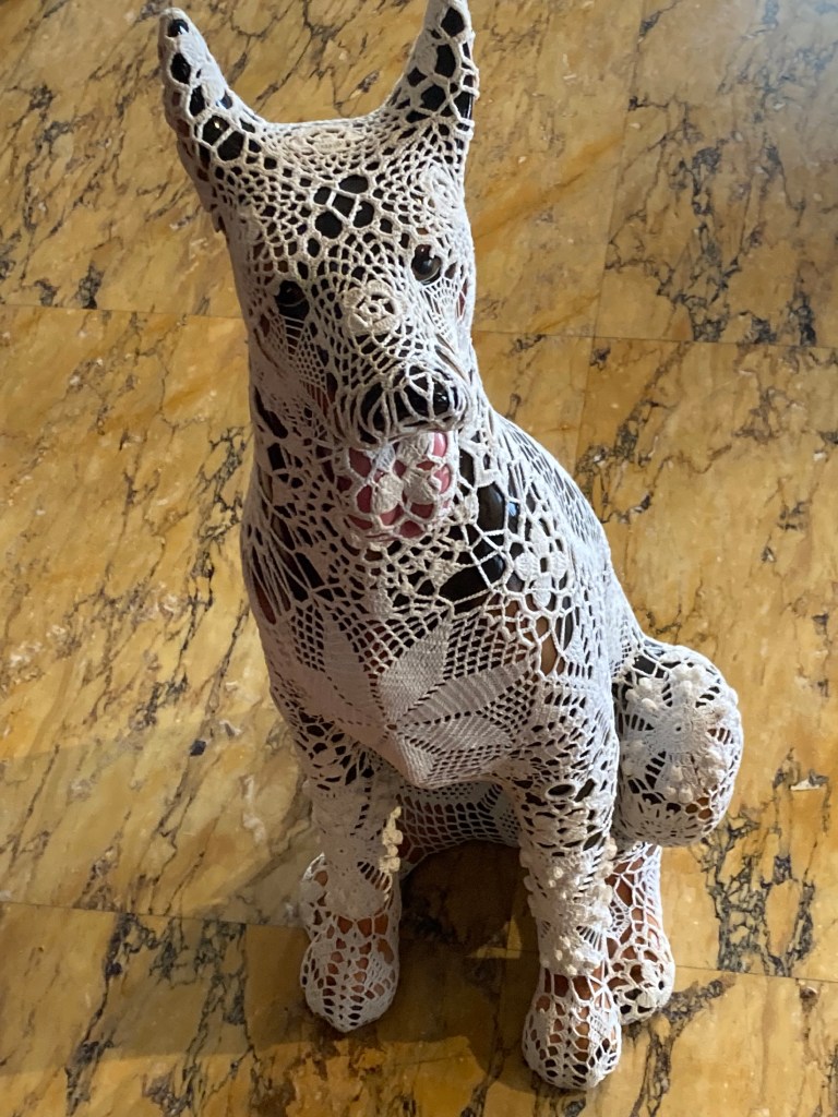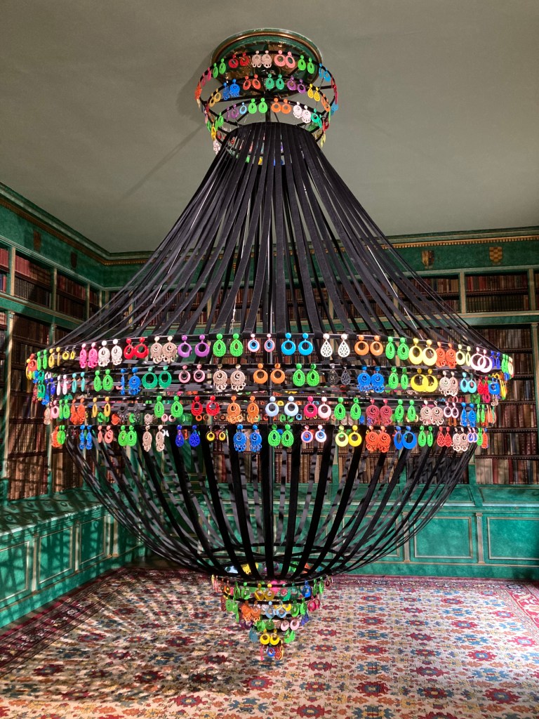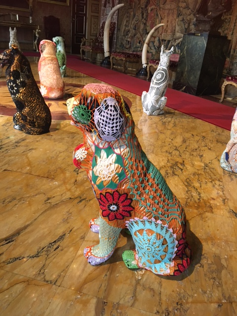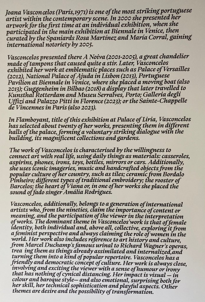 Lisbon artist Joana Vasconcelos had created pieces (mostly very big) to blend with the opulent furnishing/decorations within this ancestral home of the Duke of Alba.