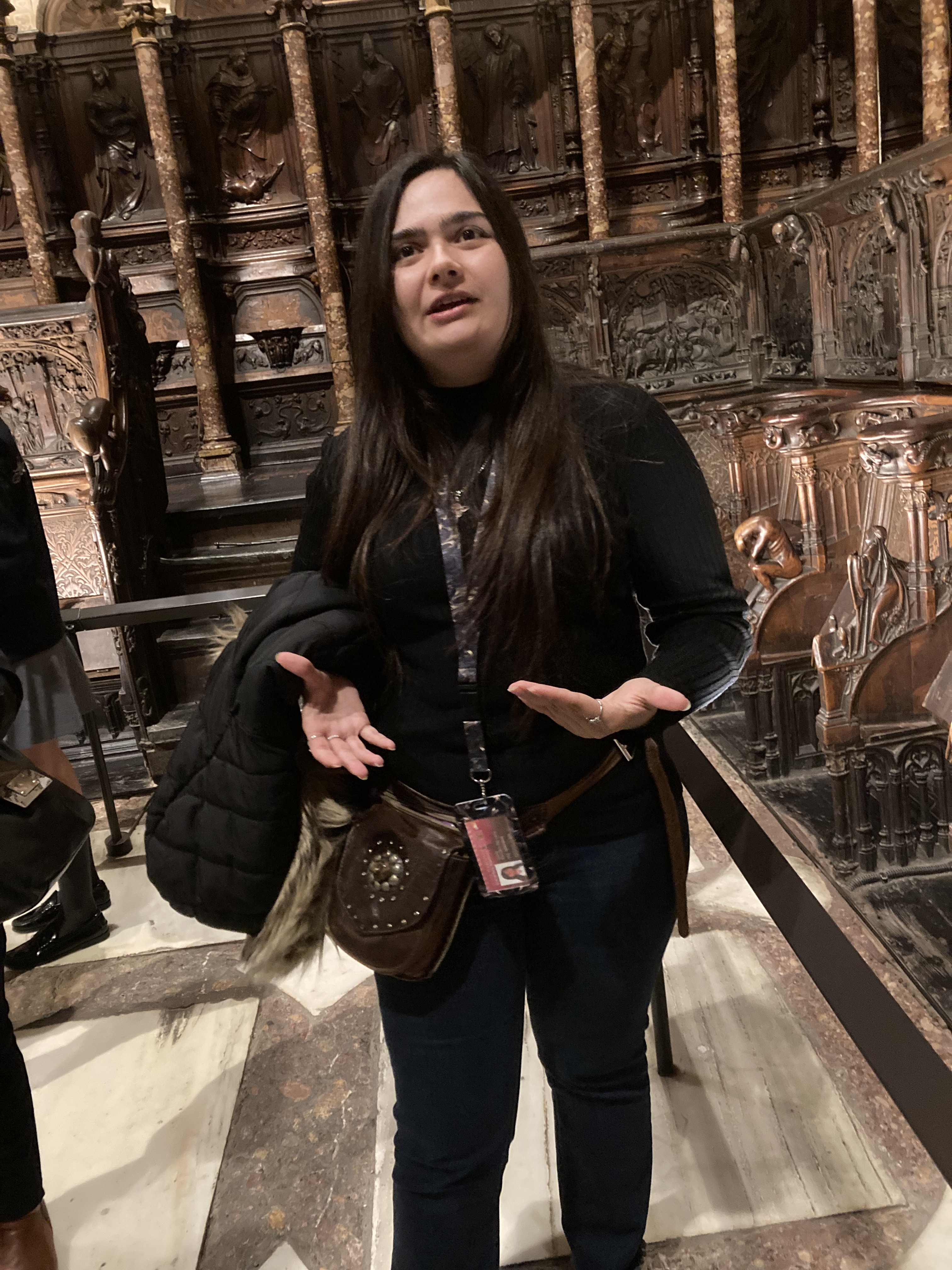 #1- Our delightful guide in the Catedral – and particularly when she laughed at our side play of getting out from under the cardinal’s hat (she had earlier explained that when a cardinal was buried in the cathedral his hat was hung high above the tomb stone set in the floor. When the string holding the hat finally gave way, whether the hat fell on the tombstone (heaven) or to the side (hell) determined where the spirit would go. If the hat hit you, it was the latter!)