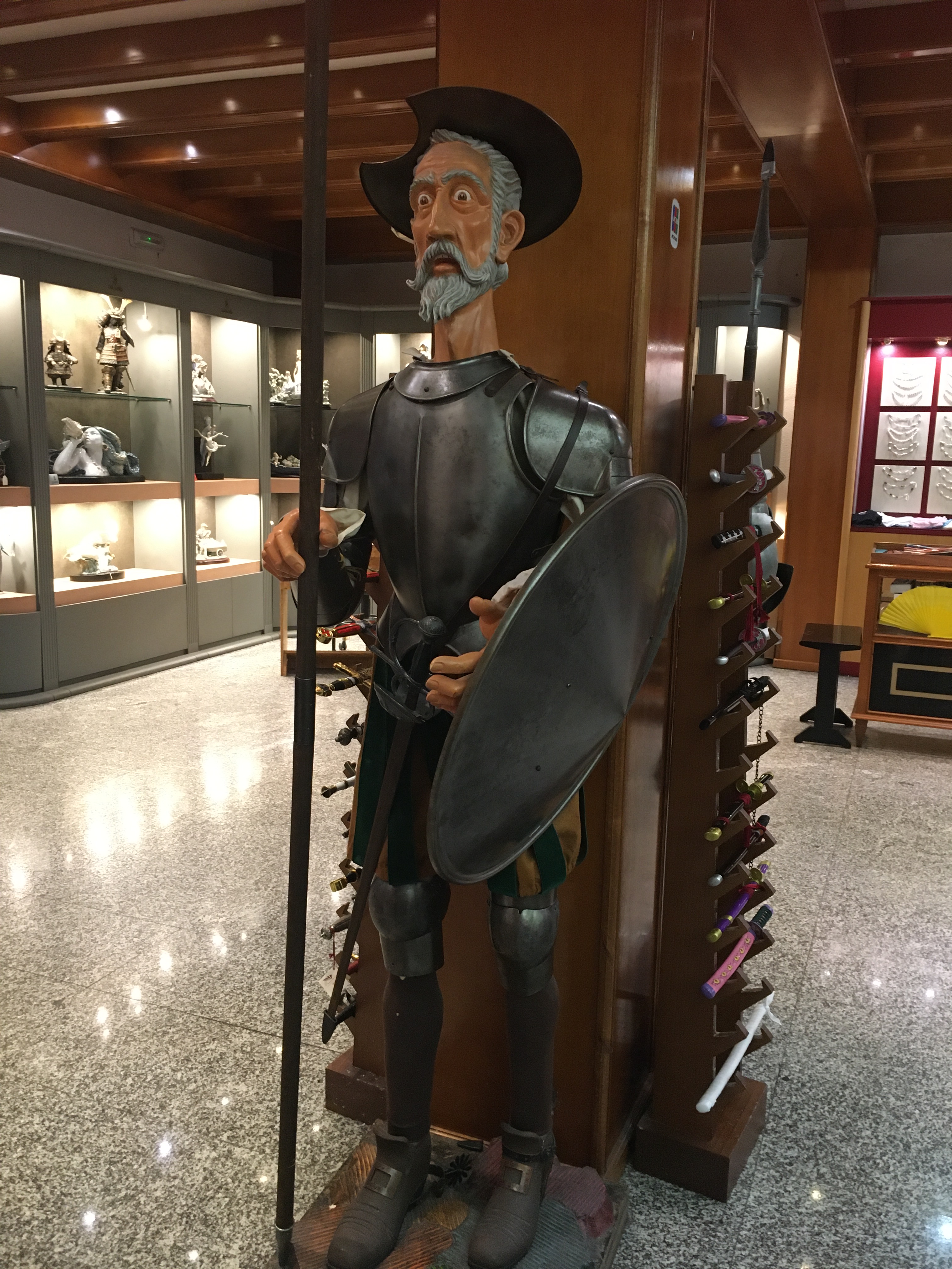Toledo’s first stop was the mandatory visit to a damascene workshop, demonstrating the working of Toledo steel swords and knives and the art of damascene, the inlaying of gold threads into a base of oxidized steel. The patterns are etched into the metal, and the thread (so thin it is barely visible) is worked into the rough edges. Nothing bought but there was an eye-popper that tickled T’s fancy.