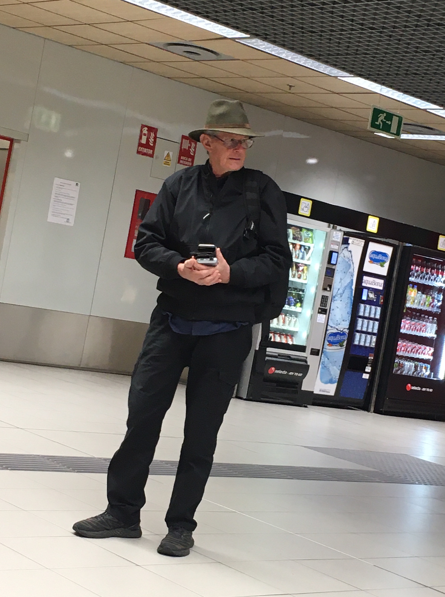 Contrary to advice, our travel card couldn’t be used for the bus trip part, but we were able to pay cash. We worked out later it was probably because we were going out of zone: we did know there was a three Euro extra charge for metro to the airport. D was surprised that all the other passengers boarded to the back of the bus. The possible answer came once we took off: the driver steered mostly with one hand, used his mobile and not once kept to the speed limits! Fortunately, T couldn’t see this.