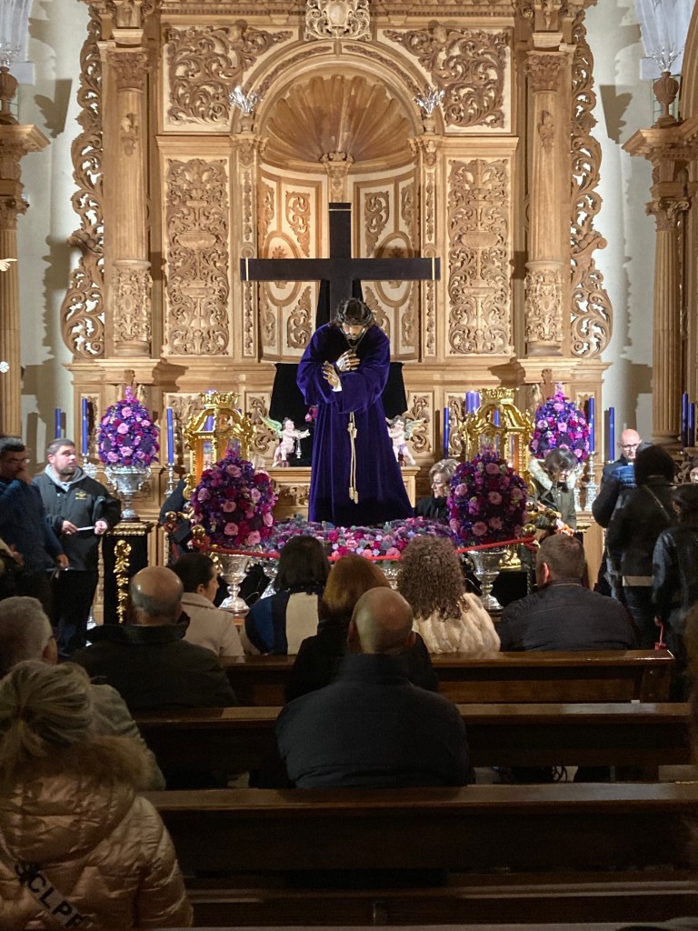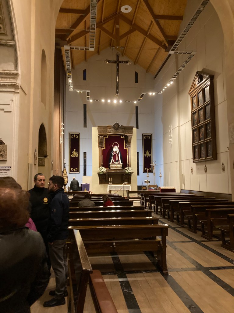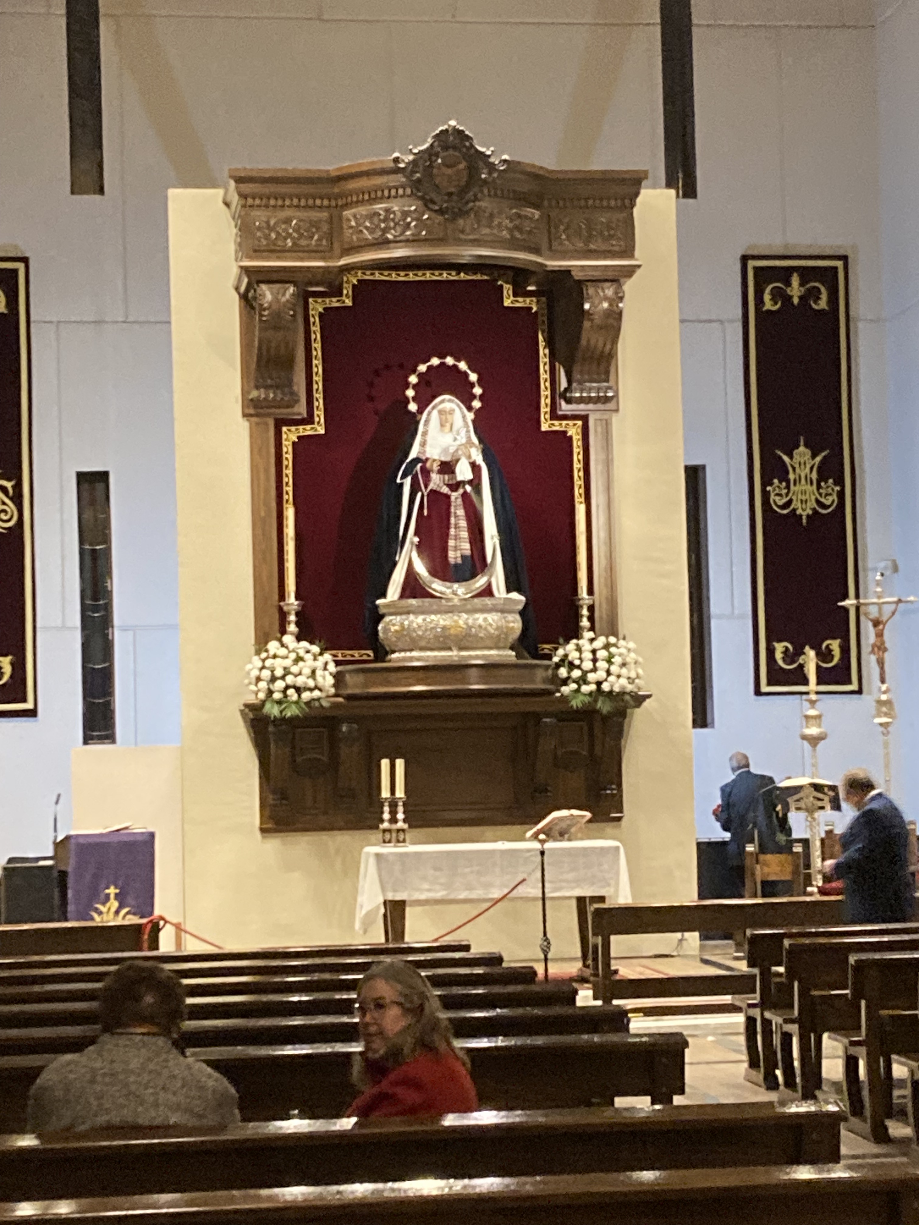 After dinner, T was still puzzled by the crowds we’d seen queuing to go into the church – they were there again, all ages, this afternoon, in the rain.It’s 3 weeks till Easter, so what is this scene about? So off we went to check it out – it was just a few minutes away. We were in fact the last ones to be let in. We entered into the main church (first pictures) and followed others into the side Chapel. We couldn’t see exactly what was happening, but some appeared to lean down to kiss behind the figure, and one women passed behind the whole time on her knees. Each person picked up a ribbon or wrist band from an attendant before passing behind the figure. We weren’t brash enough to do the whole ritual, and not sure of the niceties, so opted to slide out of the exit doorway. So we still don’t know exactly what it is about – perhaps we’ll follow up tomorrow.
