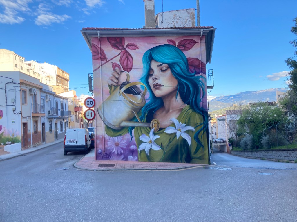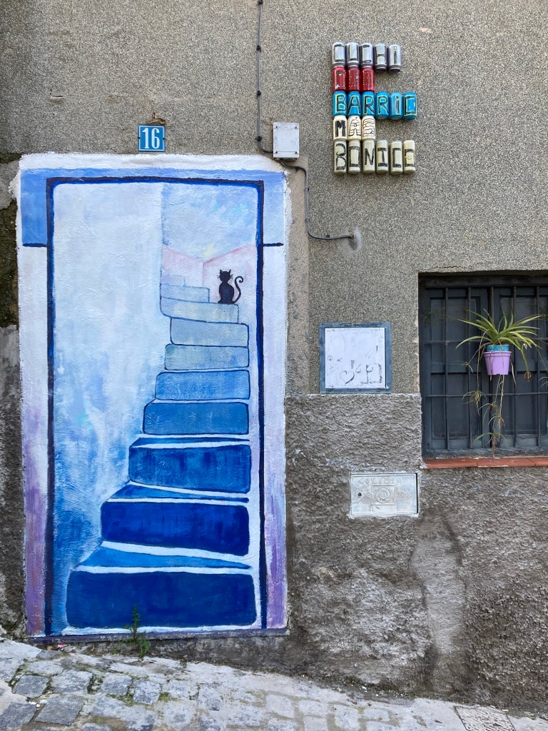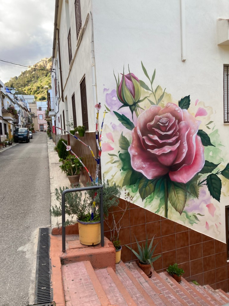 The area had a cared-for feel – plants and decorations in most of the streets we passed through. Mind you, the parking was still chaotic! A gallery of the murals follows. Sky was clear, sun bright tho’ cold, but the feeling was so uplifting.