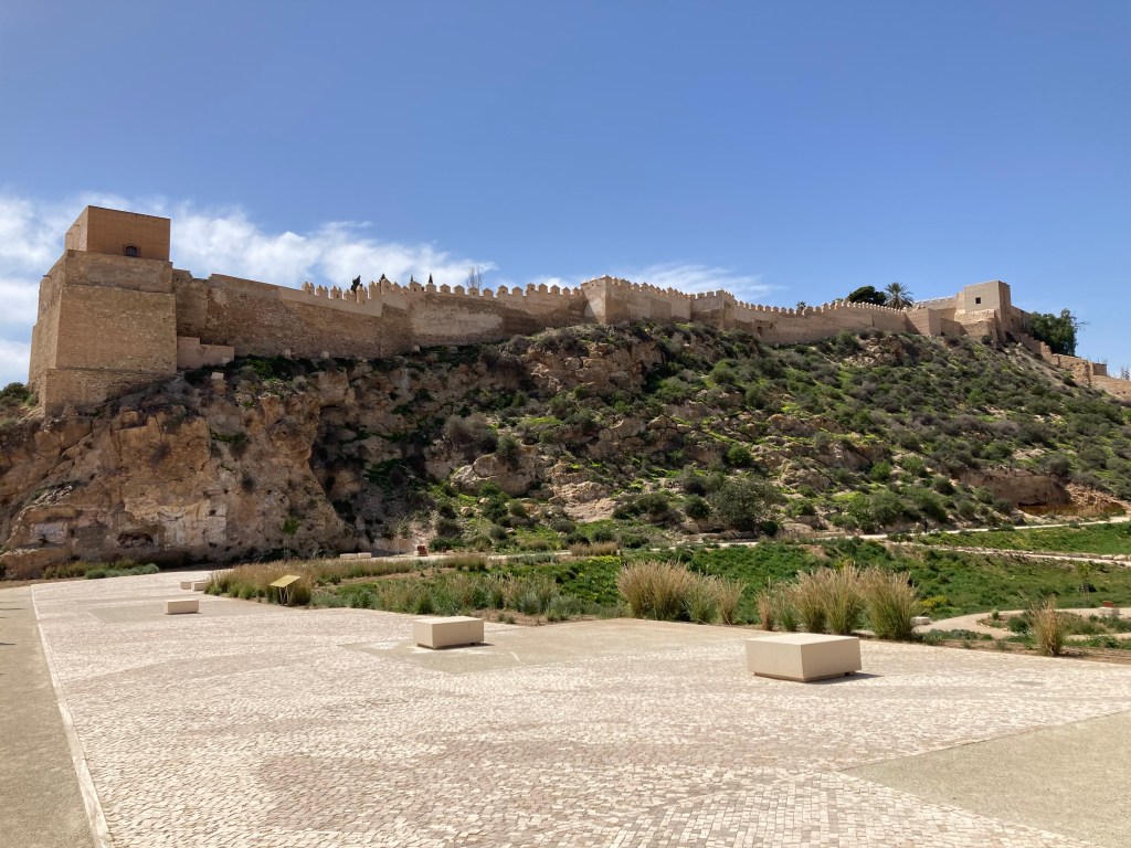 Initial plan was to head into the Parque National y Natural de Sierra Nevada but were a bit spooked by the snow covered mountains on a cloudy (is it misty?) morning, so opted to head to Almeria on the coast instead, about 100 km (more if you take into account our wrestling with GPS instructions). Landscape changed from almond orchards to arid, orange hills & canyons as we came down from the plateau to coast level.
