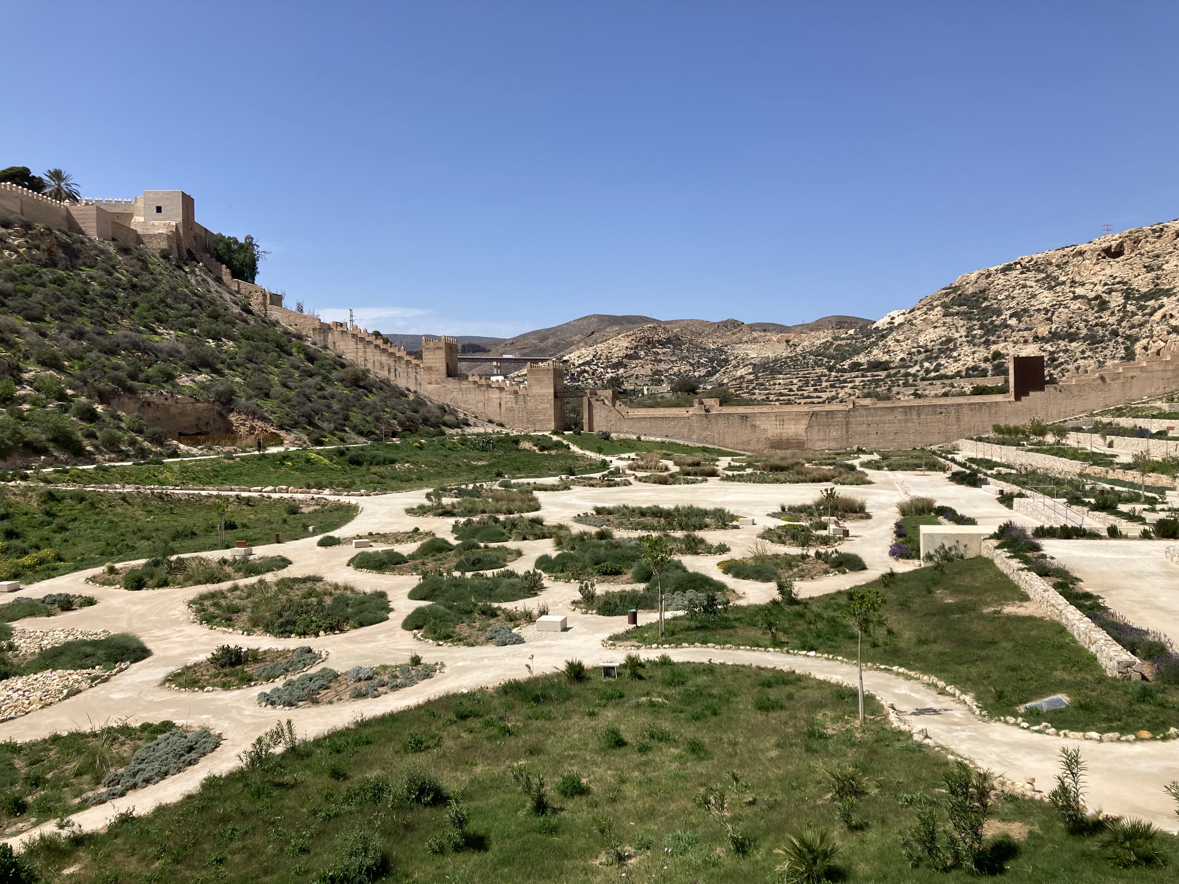 Wandered back to port & came across the Alcazaba, the huge Moorish fortress overlooking the city, another amazing construction & below a vast newish Mediterranean terraced garden. The fortress has obviously had a very serious makeover.