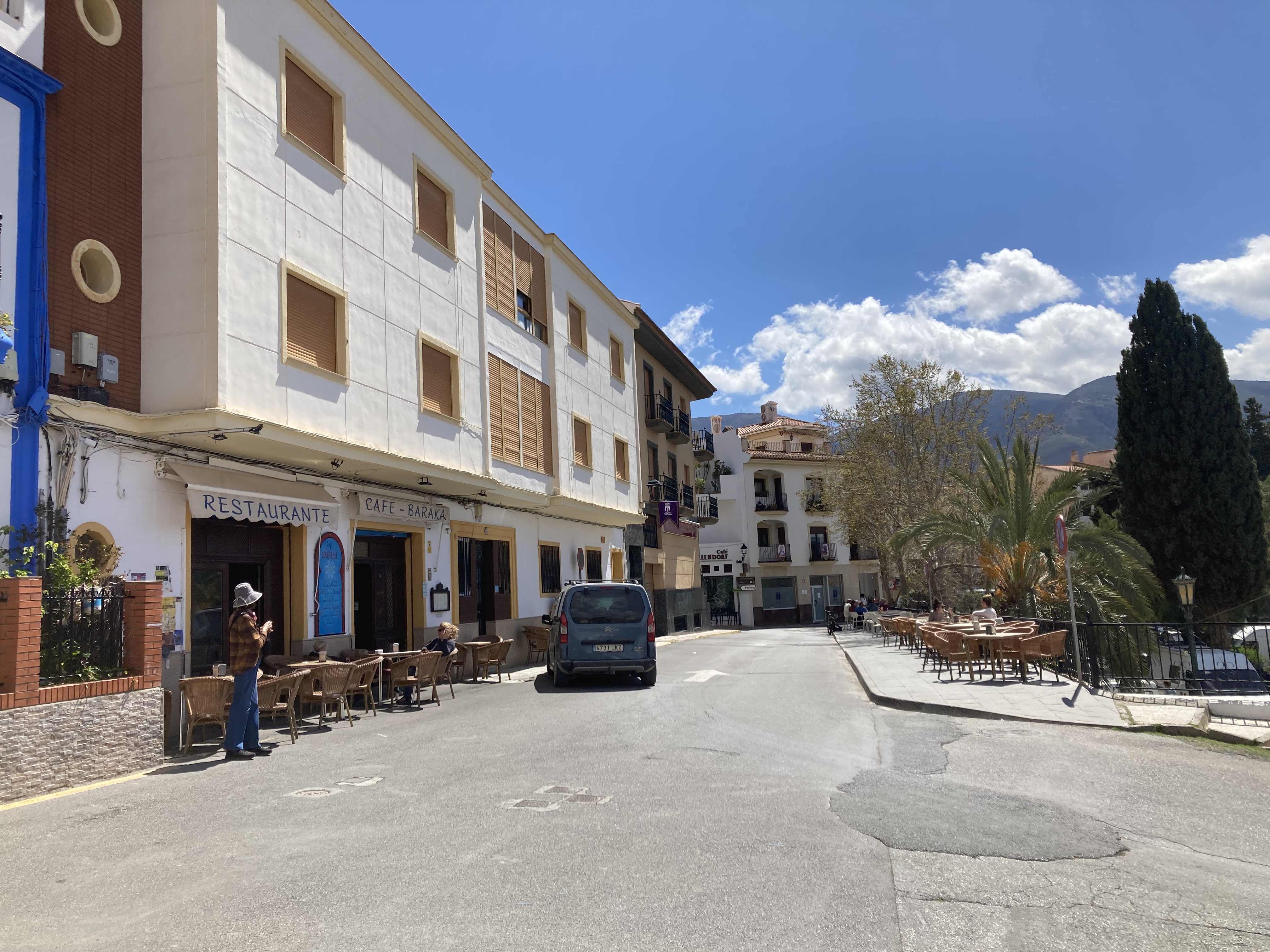 Lunch break was in Orgiva at a halal cafe & although D was craving chips – spotted on nearby table, and not all eaten – the Shawarma or for T the vegetarian alternative was plenty. No beer either, not even non-alcoholic.