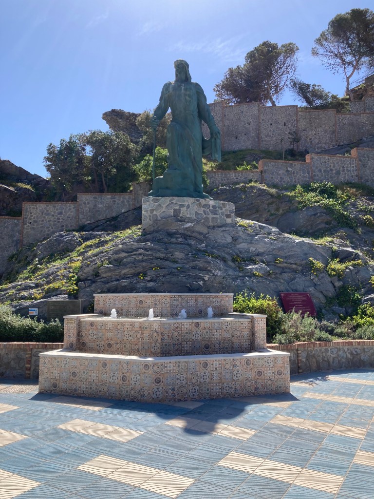 The esplanade was splendid…glorious sun, clear water, a few bodies turning brown & browner & no tourist groups. Took a walk up to where there was a huge statue of Abd-al Rahman, who set up a caliphate from here that was, of course, subsequently conquered after about three centuries. The statue was erected in 2005 by the town council – it seemed to be another small example of acceptance of history and the need to co-exist.