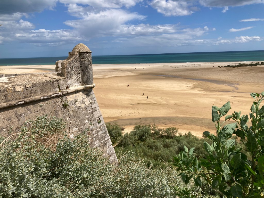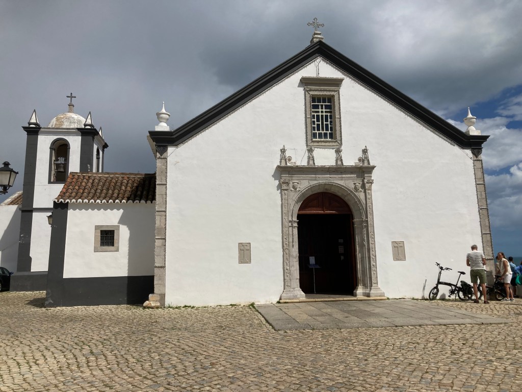 Cacela Velha, about 15 km north east of Tavira, on the Tavira Canal was next: a small former Moorish village, now not much more than a few eateries/bars catering for tourists, plus the tourist accommodation, the industry that has replaced fishing & farming. This leaves whole villages empty except for ‘the season’. T wonders at the effects of this. But the views out over the beach flats were marvellous. Stepped into Ingreja de Cacela Velha, a modest church, and fortuitously exited just before a funeral moved in.