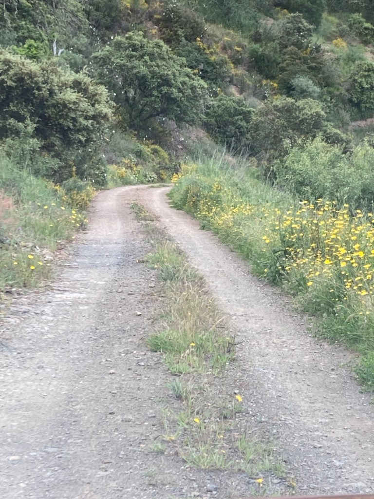On our way out this morning we took a slight detour to get some photos of our current home from the road above. Access to the property is from two directions: we came in on the longer one because Guida said that was better for her small car. D walked the other, shorter route and agreed with her, so we’ve only used that longer route. It is nonetheless, just a bit of a goat track at times – fortunately we haven’t had to drive on it in rain or at night, although it probably wouldn’t be an issue.