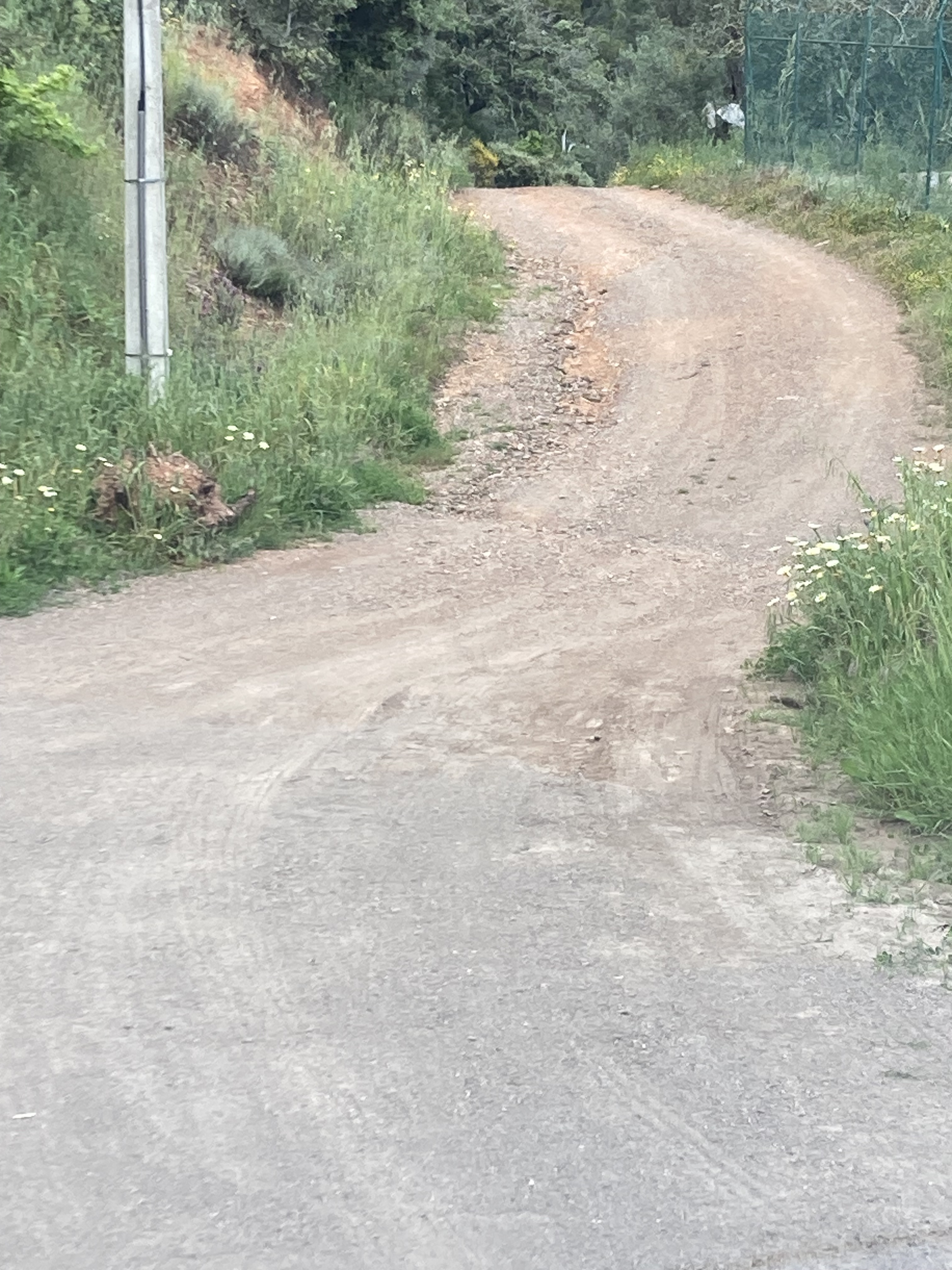 On our way out this morning we took a slight detour to get some photos of our current home from the road above. Access to the property is from two directions: we came in on the longer one because Guida said that was better for her small car. D walked the other, shorter route and agreed with her, so we’ve only used that longer route. It is nonetheless, just a bit of a goat track at times – fortunately we haven’t had to drive on it in rain or at night, although it probably wouldn’t be an issue.