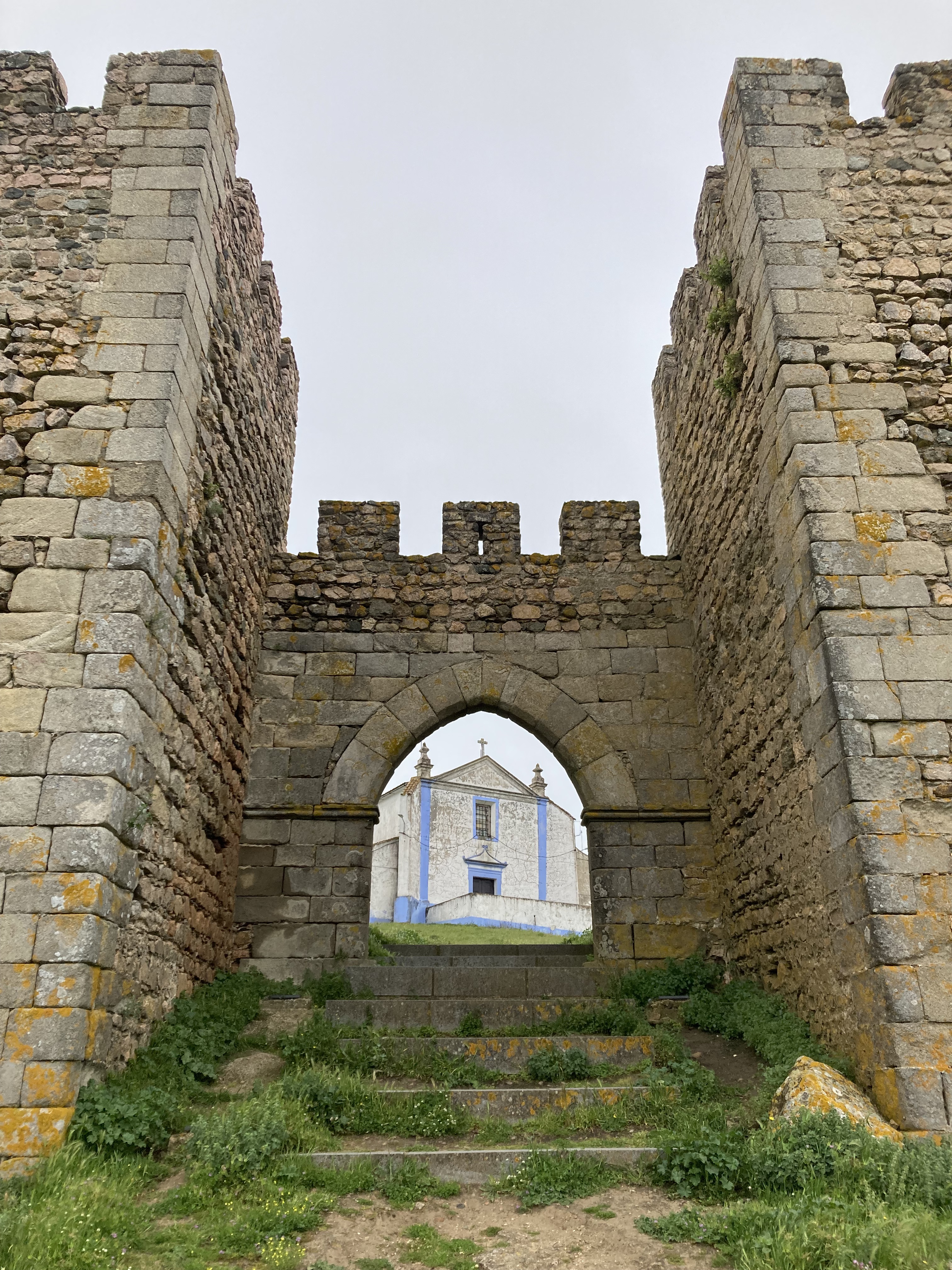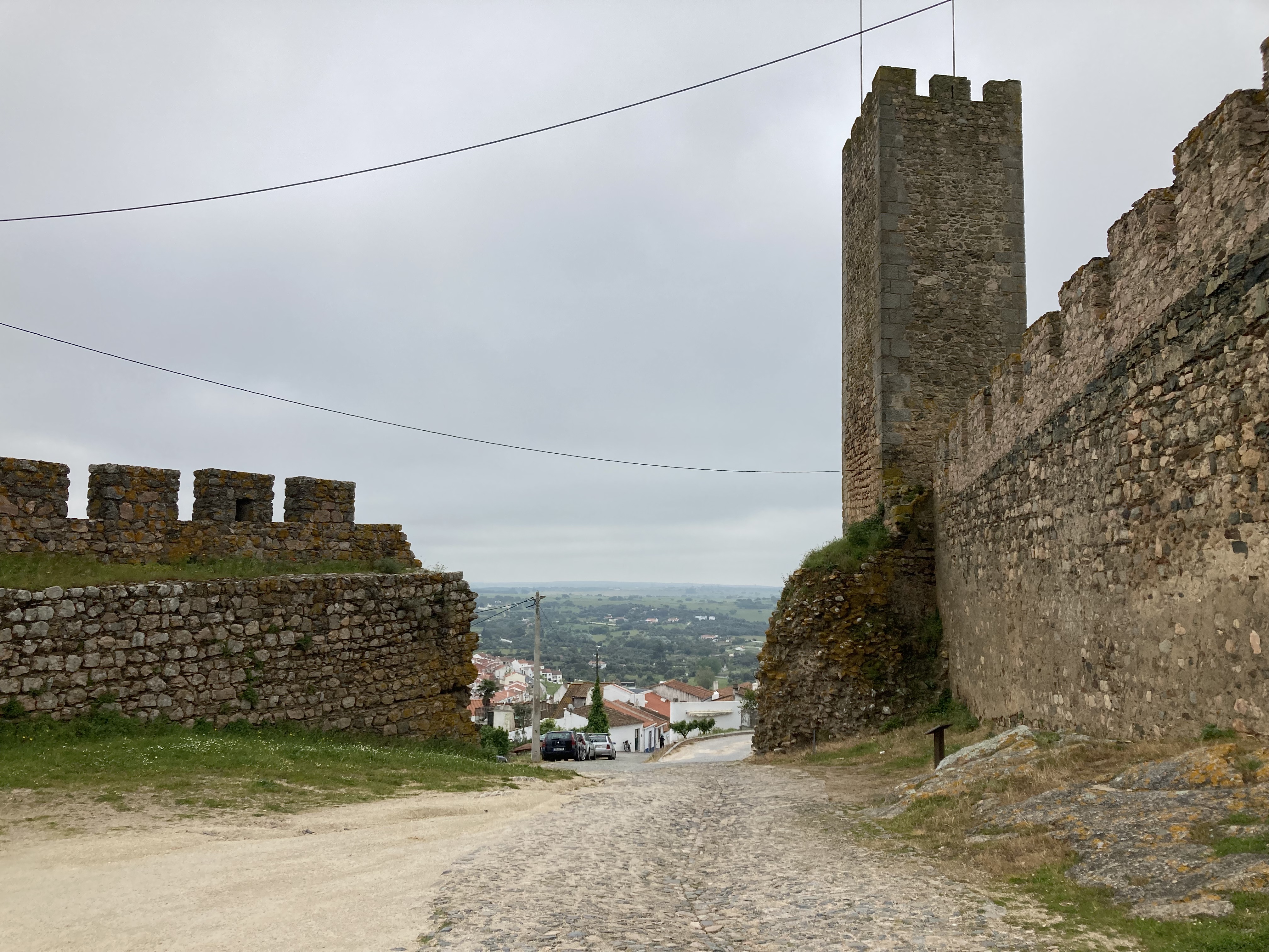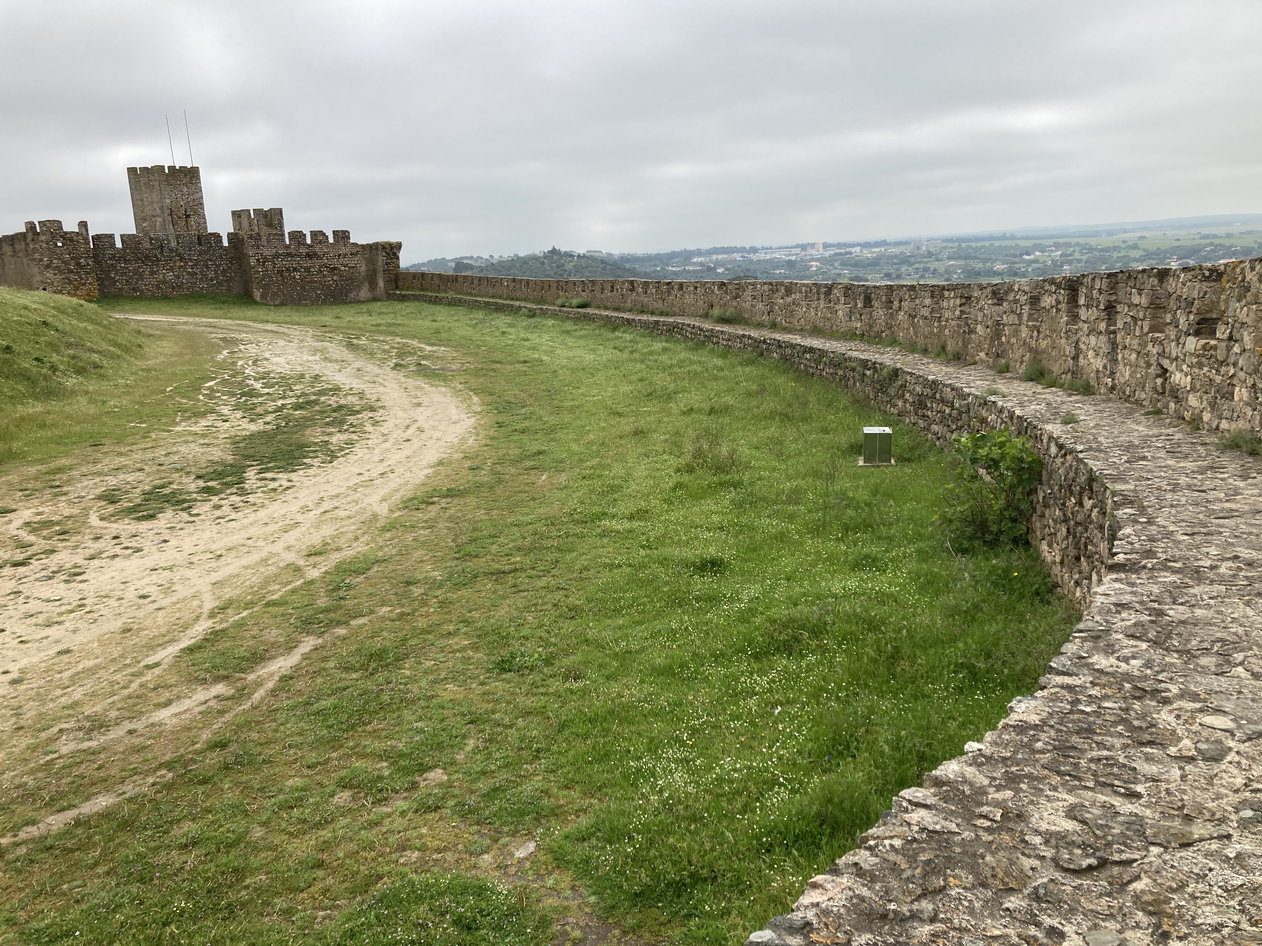 After sampling the espressos and empada at the same delightful cafe as last time – they remembered the request for extra hot water – we drove up to the circular castle. It was a ruin, not inhabited, but we could freely walk around. D could picture such a castle in the Napoleonic era, when castles were besieged and stormed: it was very reminiscent of descriptions of sieges in the Bernard Cornwall ‘Richard Sharpe’ novels.