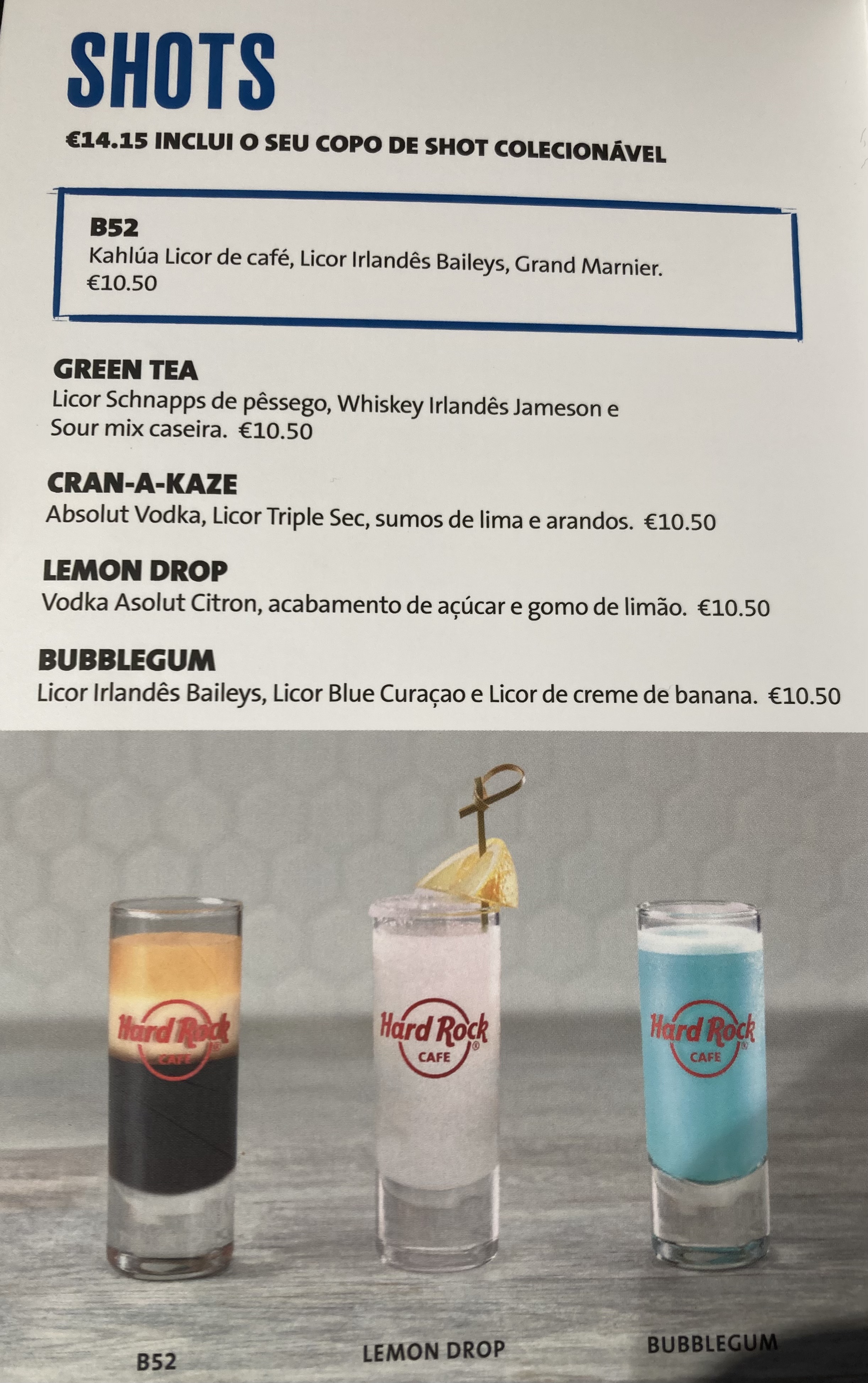 By now it was time for lunch, so we hopped (actually limped gingerly) off short of the finish, and into Hard Rock Lisboa. Bathroom stops sometimes have priority but when there was still no service, gave the (probably) best drink in the house a miss. Might try serving that when we get home.