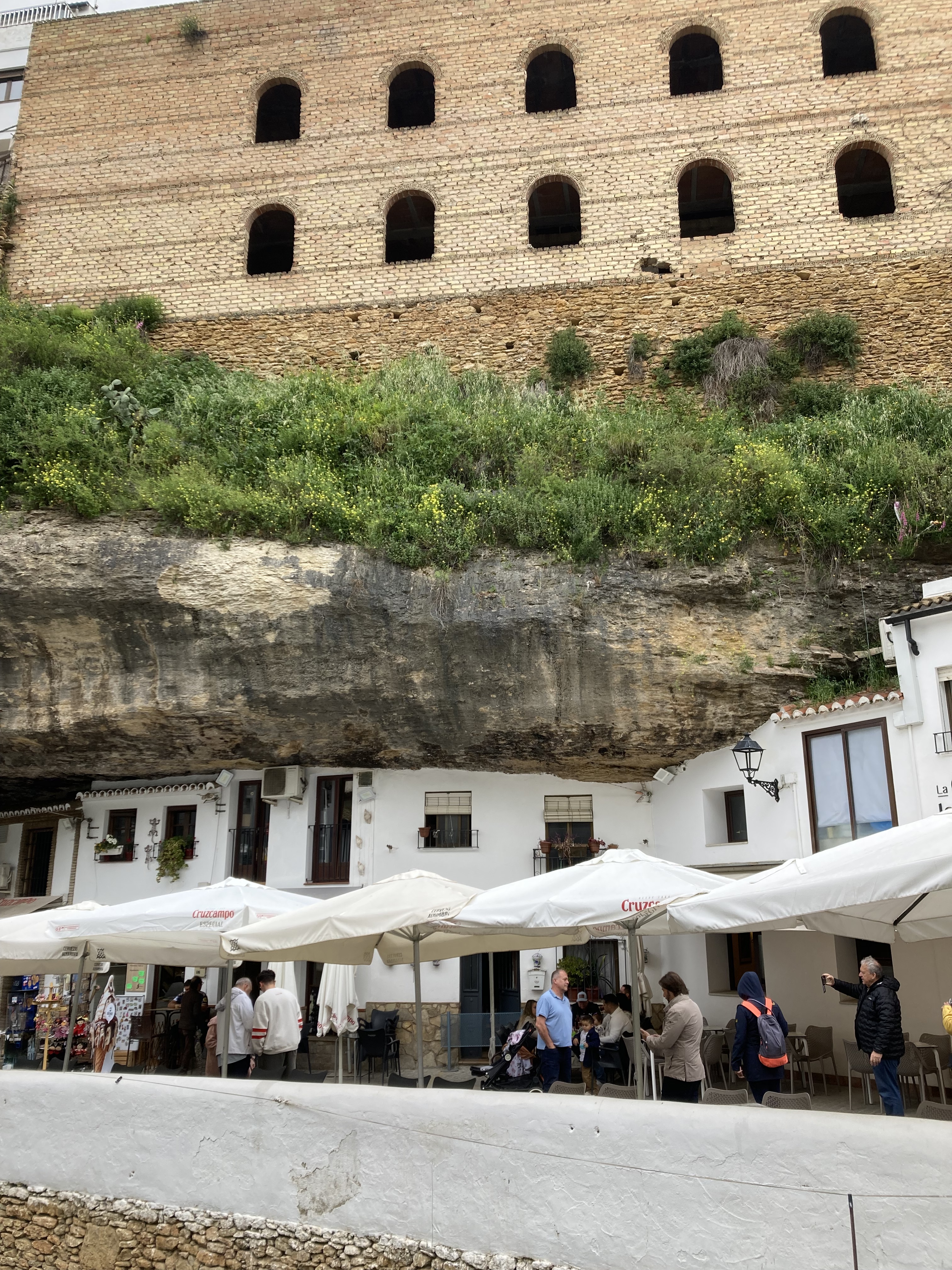Our picnic lunch (chicken sandwiches made from that cooking two nights ago) was on a bench beside the ‘crab flats’ at Santa Luzia, while others filled the ‘octopus cafes’ and ignored wind and rain. It’s what you do.