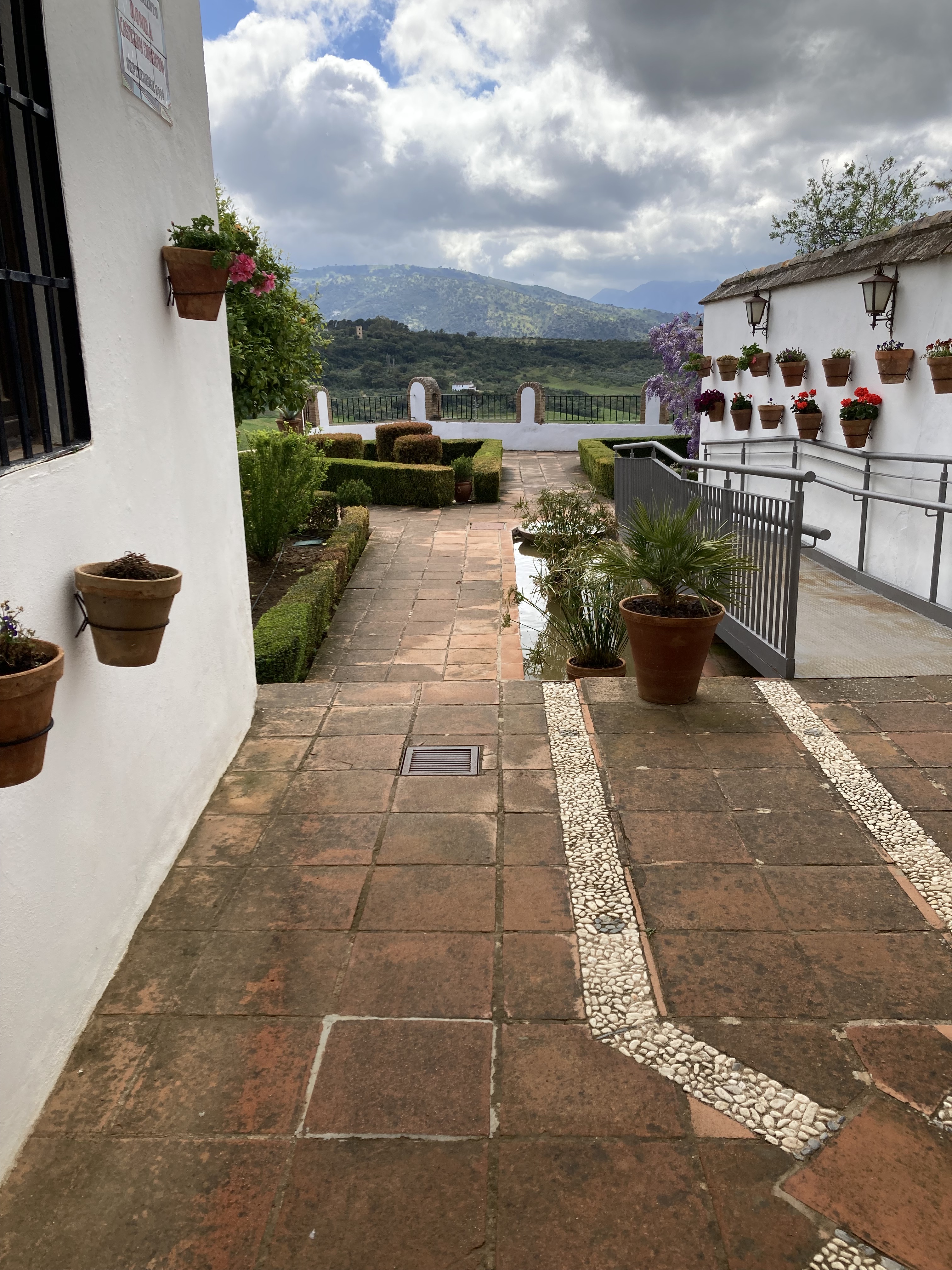 On our way out this morning we took a slight detour to get some photos of our current home from the road above. Access to the property is from two directions: we came in on the longer one because Guida said that was better for her small car. D walked the other, shorter route and agreed with her, so we’ve only used that longer route. It is nonetheless, just a bit of a goat track at times – fortunately we haven’t had to drive on it in rain or at night, although it probably wouldn’t be an issue.