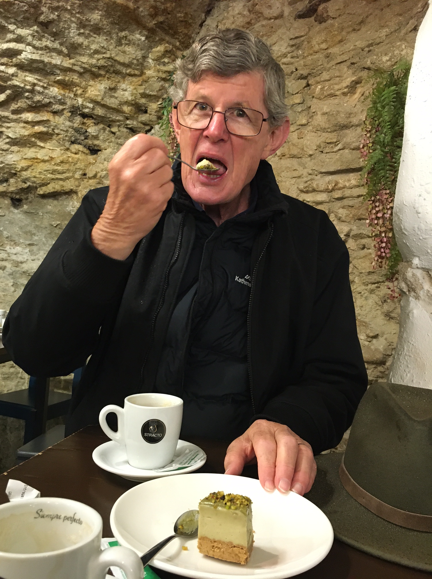 First stop was a cafeteria for very good espressos and some tasty sweet treats. Just as we finished, the rain arrived and we led the rush inside, grabbing a table and ordering more coffees and a Portuguese tart to justify being there (well worth the second helping).