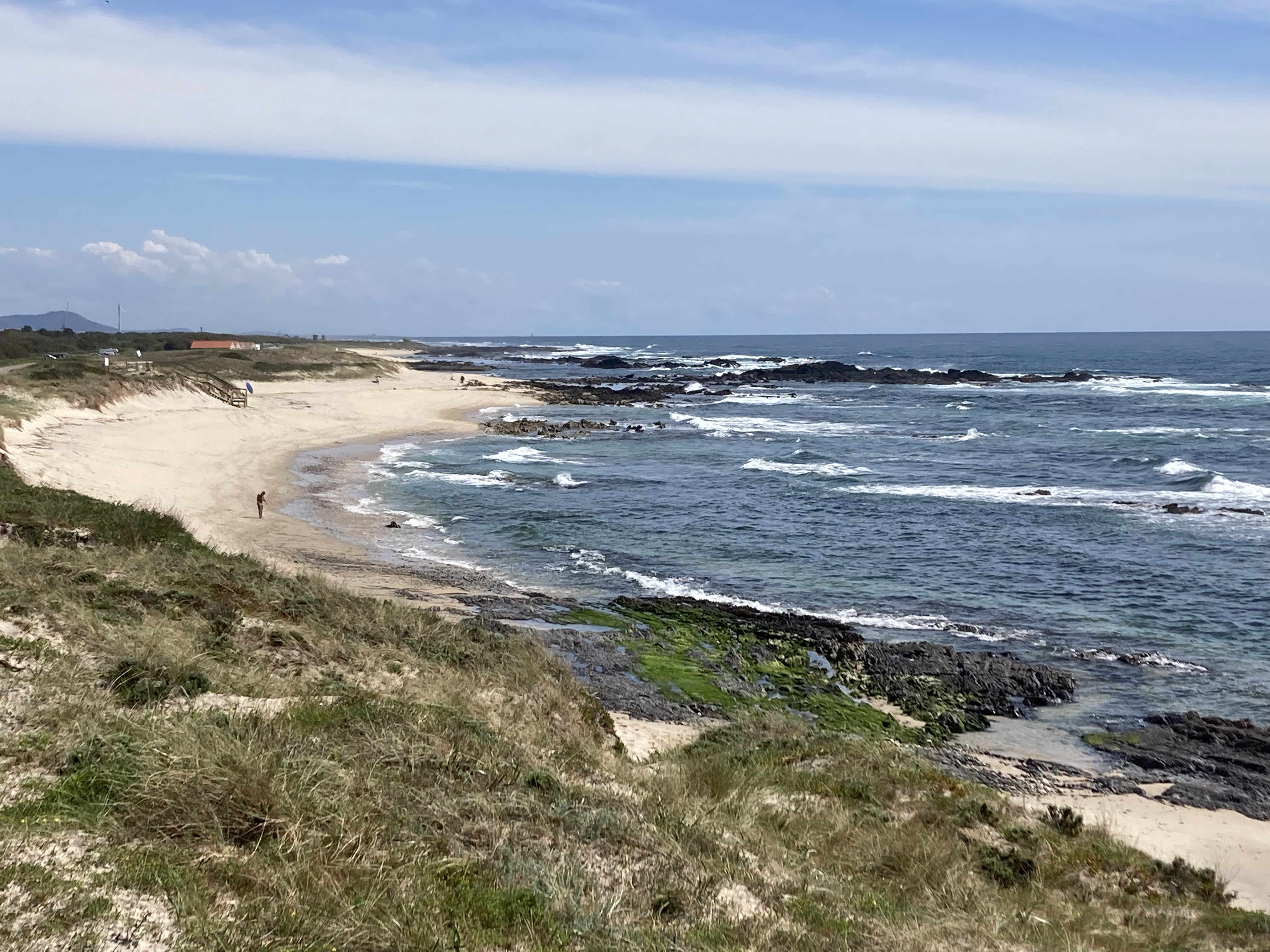 Met several walking groups & solos on the Camino route (this section from Porto to Santiago about 200 kms).Chatted to two German ladies of a certain age relishing the walking on this coastline; the weather & colours were outstanding. When we commented on yesterday’s conditions they laughed; they’d spent the day in luxury in a spa hotel, ‘a gift from my friend’ – the other one. They were each carrying 10 kg backpacks as their only luggage, mostly water, but had no pre-bookings each night: made it up as they went along. The night without power had been a torch & bread.