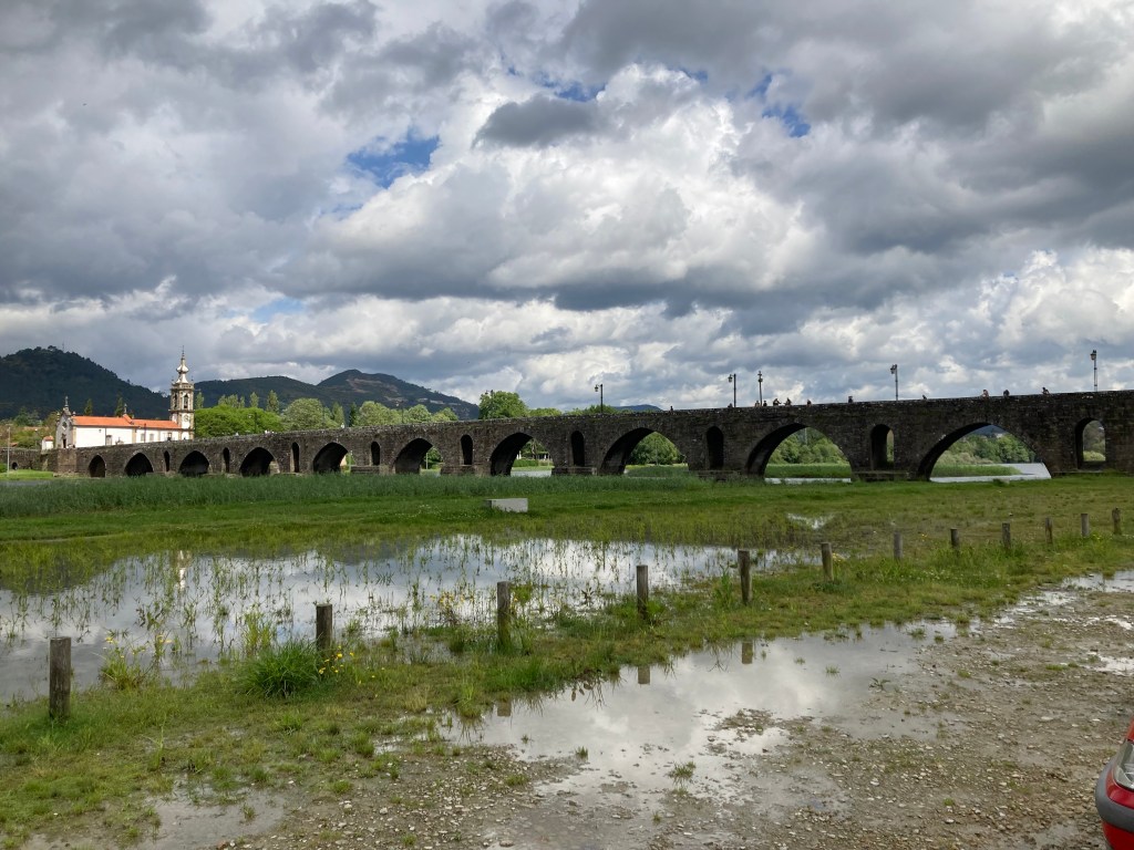 Since our new destination was only 90 km from Montedor – about a couple of hours – we could and did visit Ponte de Lima, a trip aborted yesterday. 40 km, so an easy drive, until you get into the traffic at Viana do Costello and then Ponte de Lima! But the parking area was huge – so we went straight into a spot beside the river.