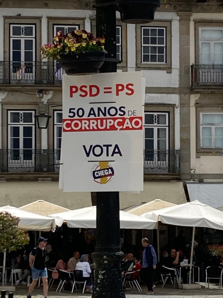 On our way back we were faced with a small election rally – Portuguese elections are on 18 May. Very low key, more fun than passion. Apparently the current Government is slightly right, and there have been signs suggesting corruption. Who would have thought? But we have no idea what the situation is, or the issues, although we suspect energy reliability may become a feature. Hold that thought.