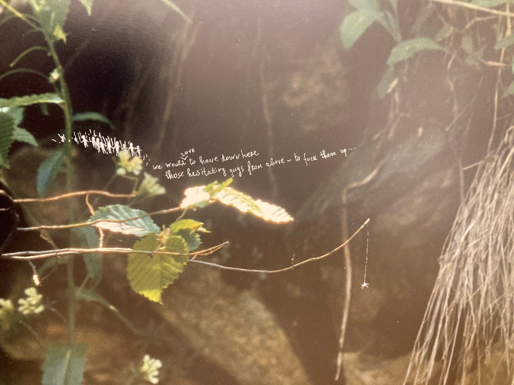 This big painting (the bottom image) had wry little sentences barely seen from a distance.