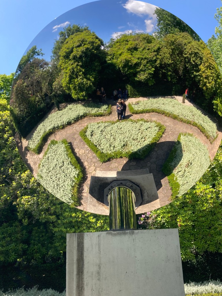 Then it was time for some fresh air: into the extensive gardens and grounds. The gardens were a perfect balance to the mental intensity of the gallery. The gallery is a vast, light- filled space with several huge ‘garden view’ windows. The modernity and spaciousness were such a contrast to the ‘tight, narrow spaces’ that characterise the old cities and the dense apartment living.T felt that she was at home (and possibly at the NGA). And at the Herb Garden we contemplated a cunning cat carefully climbing a conifer to catch a calling canary – canny canary cleared out. Cat crestfallen. Crans clapped and cheered.