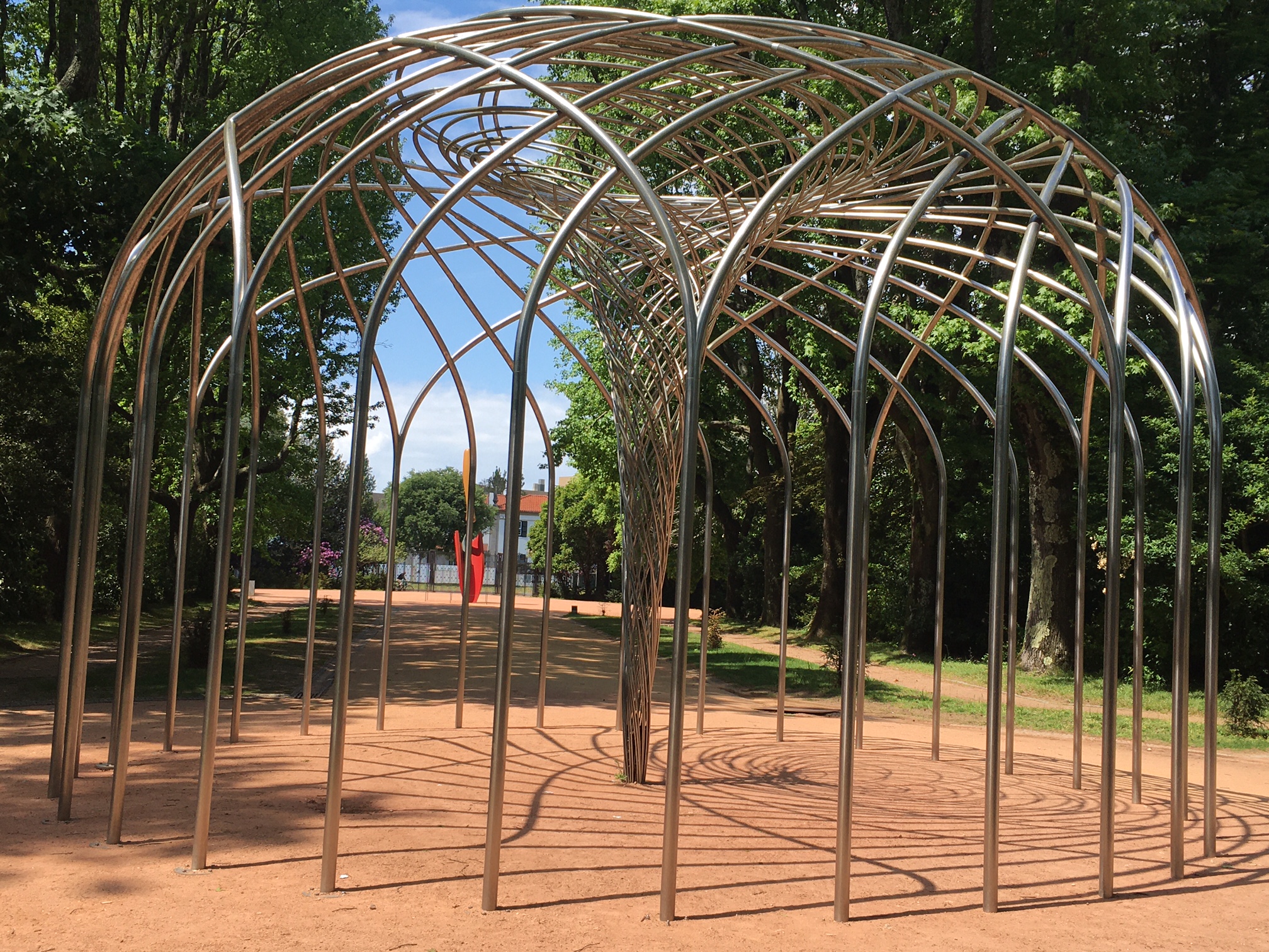 Overnight rain, but by morning the sky was mostly blue. Excursion today, by car, was to the Fundacao de Serralves, that had been aborted a couple of days ago (remember Route 207). The drive, about 25 minutes, was remarkably smooth, and we grabbed an on- street parking spot about 400 metres from the entrance. What a change! there were free spots almost to the gate! This was a very different Porto setting, in a wide street flanked by big trees and big stand-alone houses.