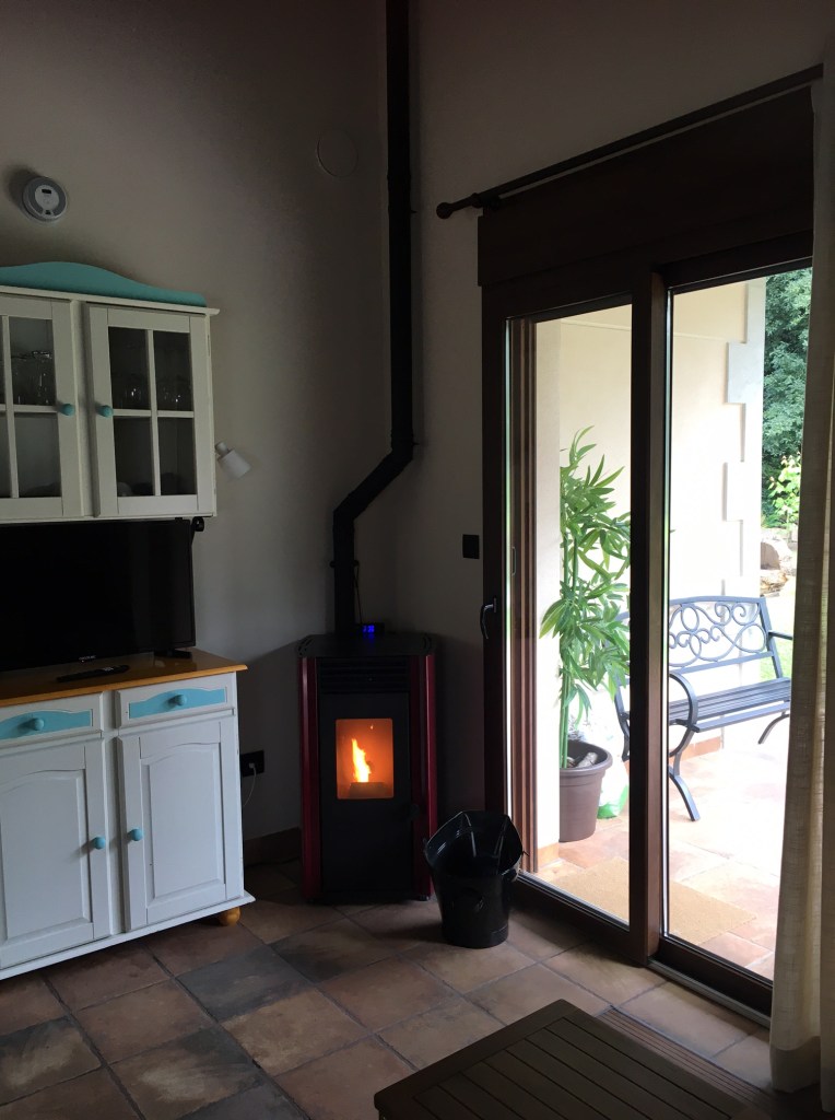 Doris was on her best behaviour today and took us straight to our new home, with its own squirrel. This place is up there with the best on this trip. Essentially it’s a stand alone cottage (one of two) with lots of space and lots of parking! Settled in, and the ‘chicken pellet’ fire started up by itself. ‘I didn’t touch it’, said D.