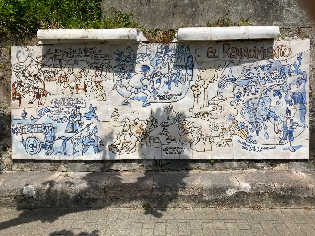 The walkway had a permanent display of tiled dioramas depicting the history of the town: they were sort of serious comic book, but a great history lesson. Pre-history, Romans, French…but interestingly, no Islamic period.