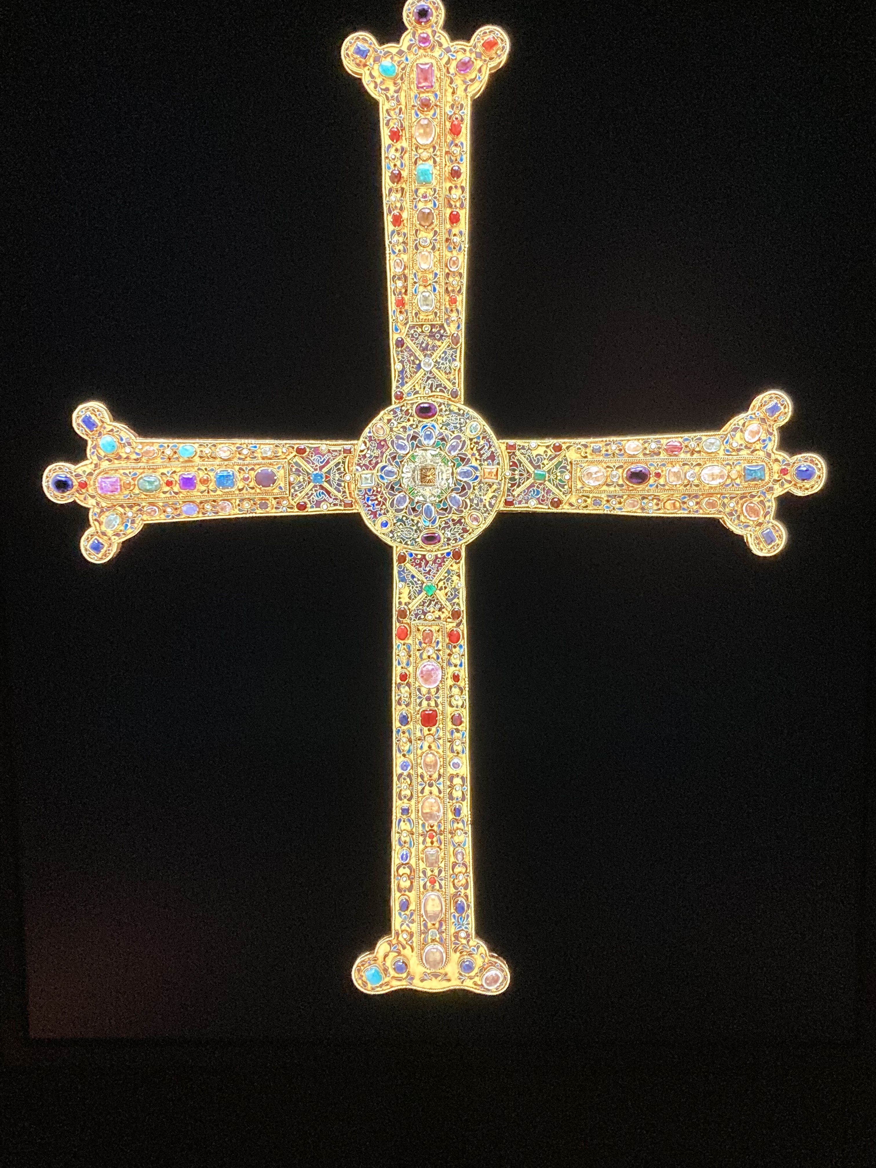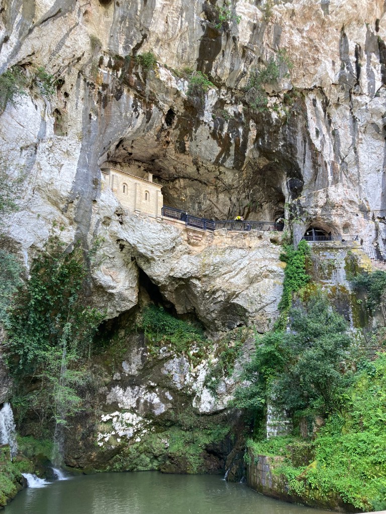 The sanctuary was busy with several tour buses in. We had no foreknowledge of this place apart from reference to a chapel in a cave in the mountains and it seemed an appropriate destination on a day in the Picos. Our first stop was the museum, a small but beautifully curated exhibition, focussed on big portraits and religious artifacts.T ogled the embroidered vestments; oh to have that skill. One set had come from Cardinal Angelo Giuseppe Roncalli, who became Pope John XXIII. Although there was no English translation available, some information could be gleaned.