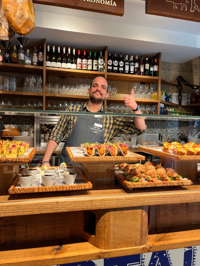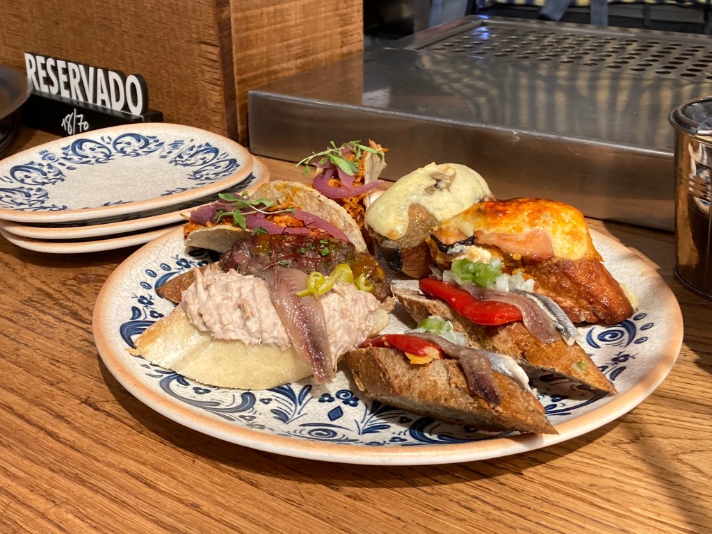 The first walking section was longer than expected, and J suggested that it was now time for a beer. We were in the ‘tourist’ lunch scene by then and tavern prices reflected that, usually a 3 course menu of the day, but we eventually found something more suitable: beers, of course, and a shared selection of tapas.