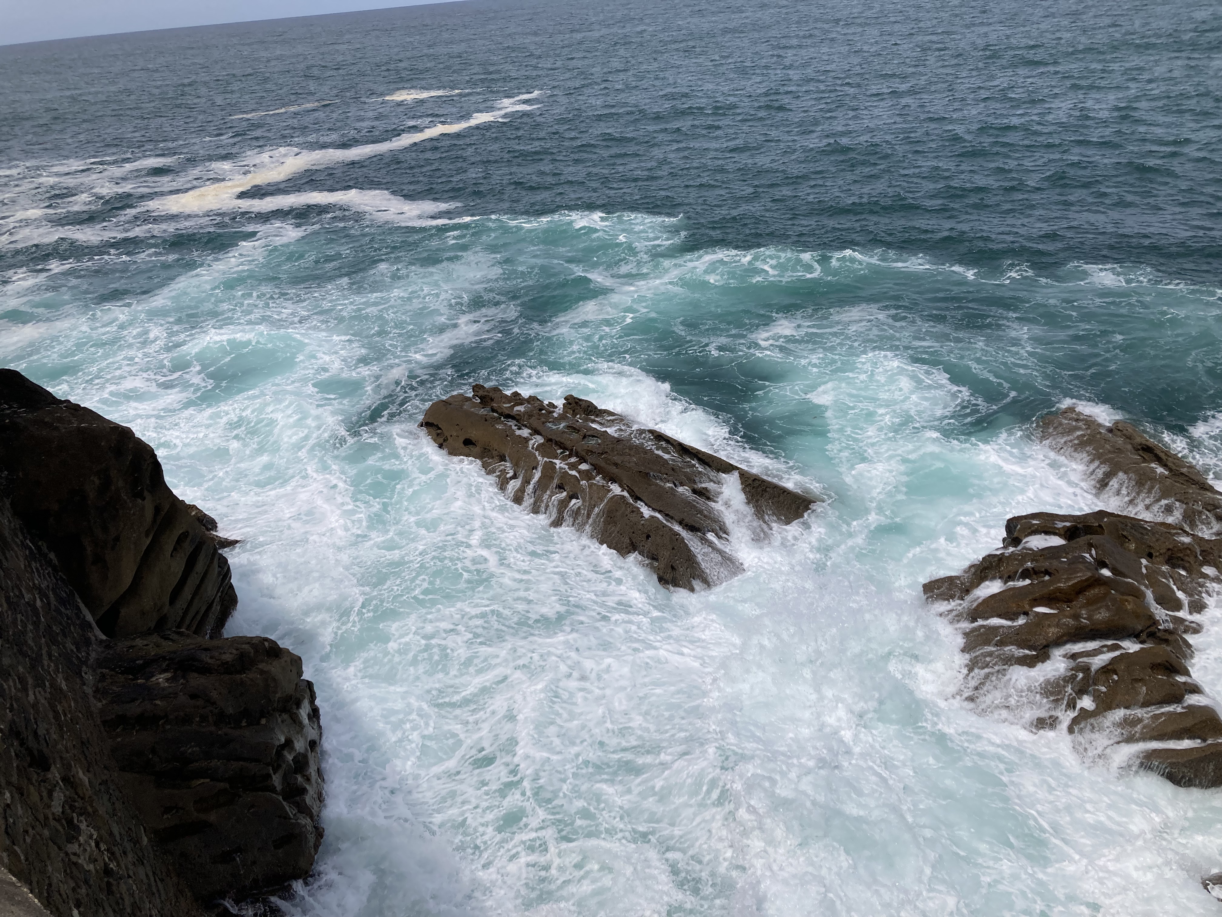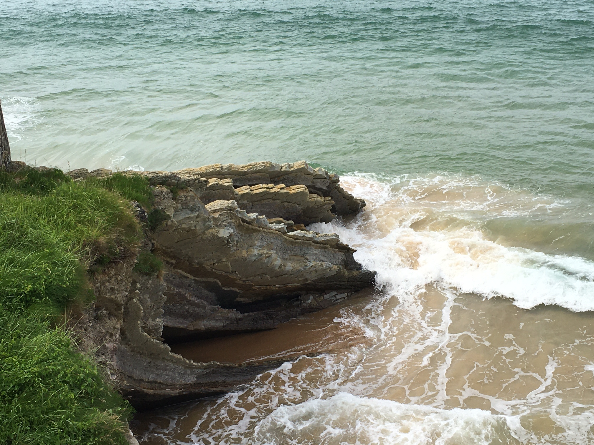 At the Tourist Office, we got maps, a small Basque dictionary (good luck with that) and walking route advice, then set off beside the river mouth, by the old town, around the bluff, and there was the sea, surging onto massive grey blocks of granite (?)