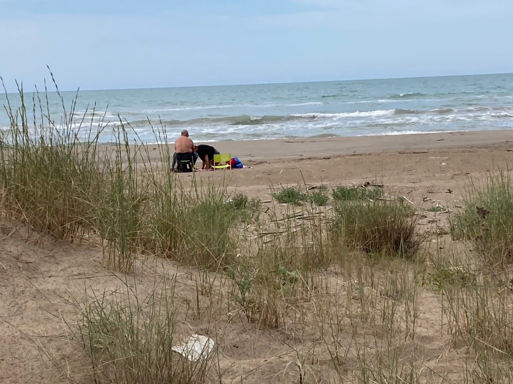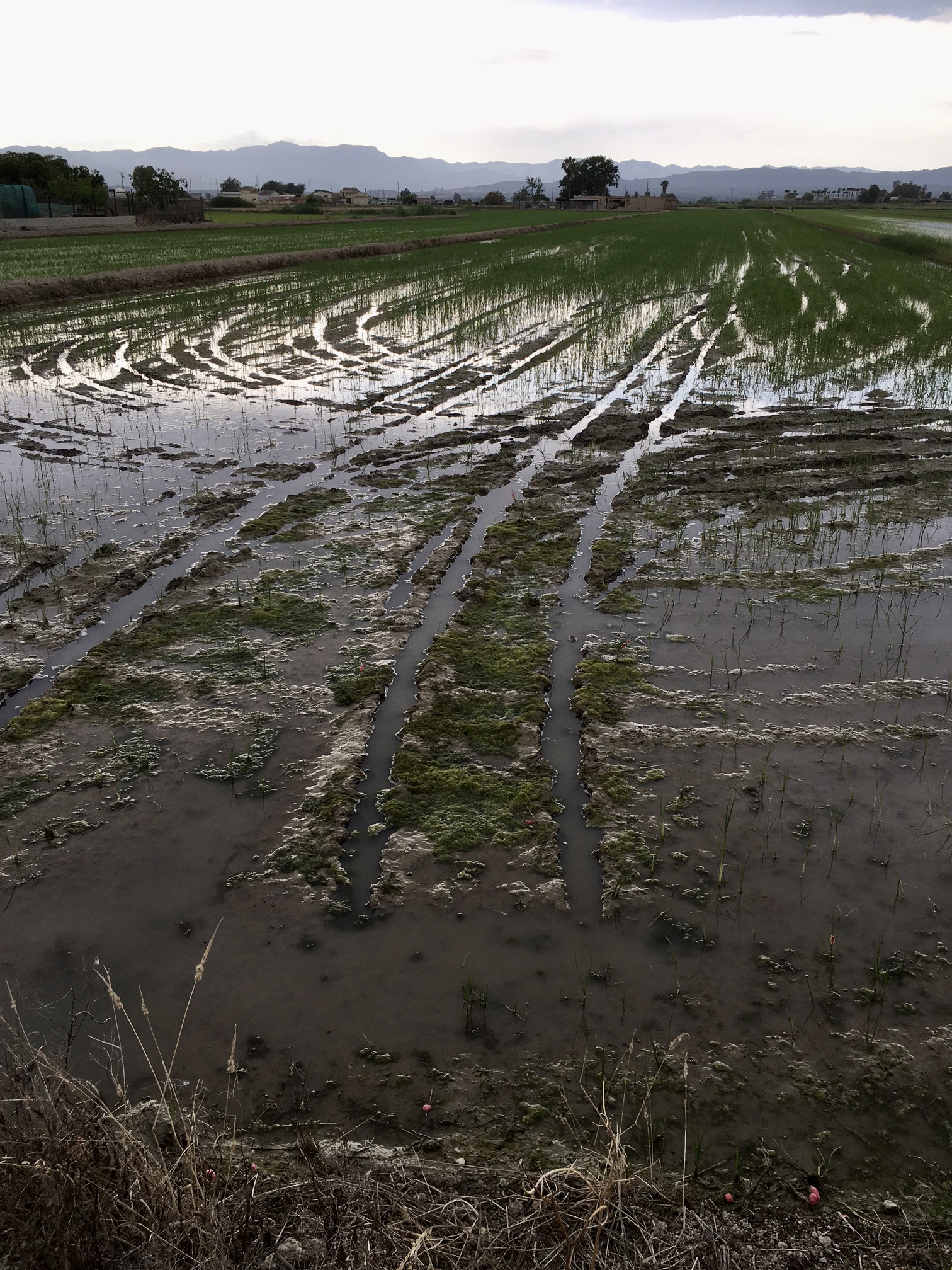 We arrived at Restaurante Los Vassos Deltebre, at one end of Platja de la Marquesa, on the Balearic Sea. The water (and beach) were uninviting with dark sand and choppy surf – apart from one hardy couple.