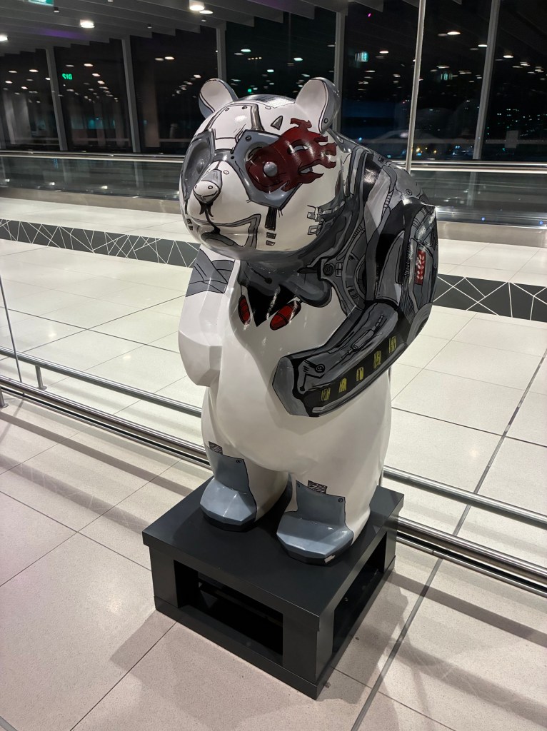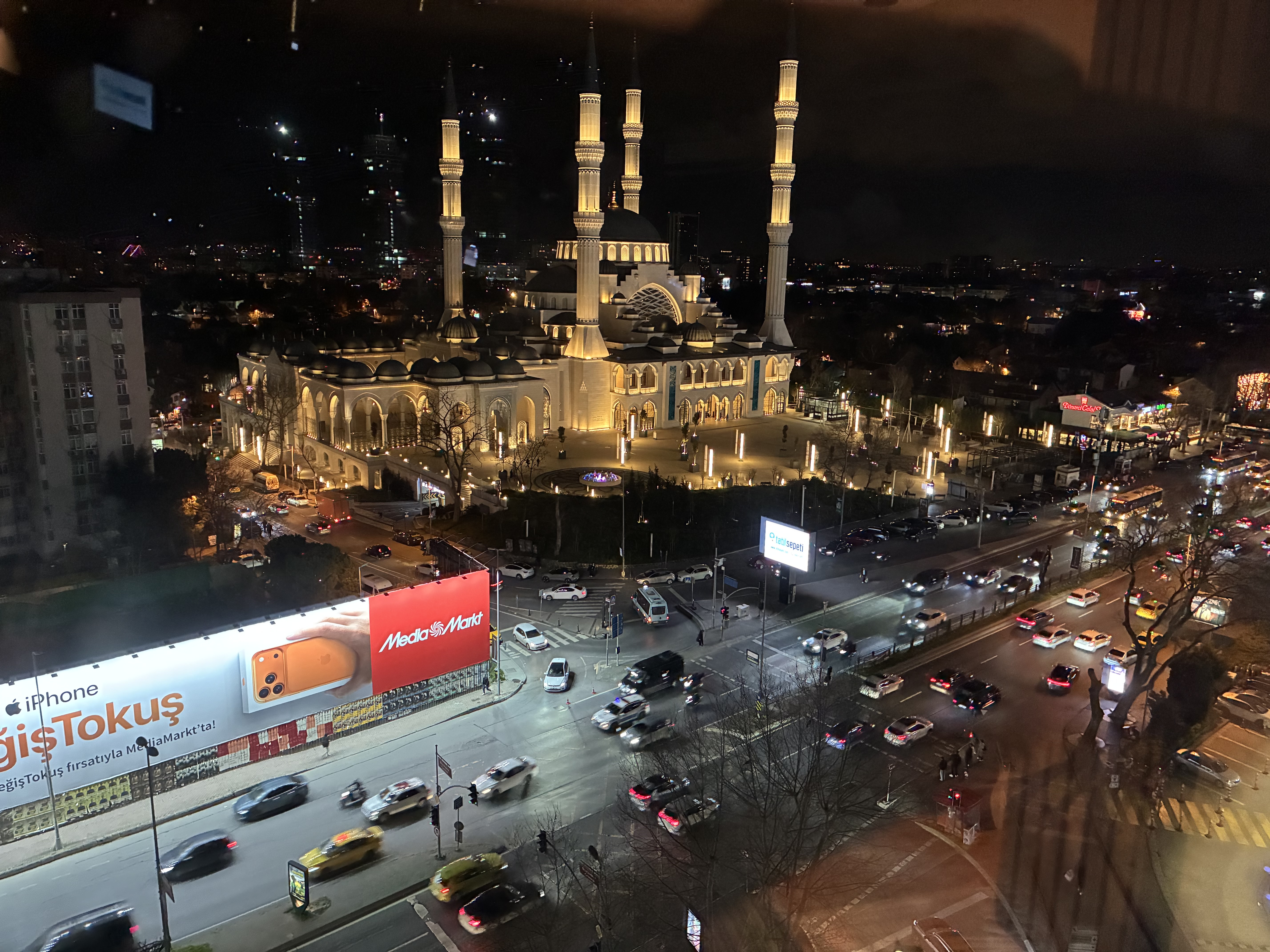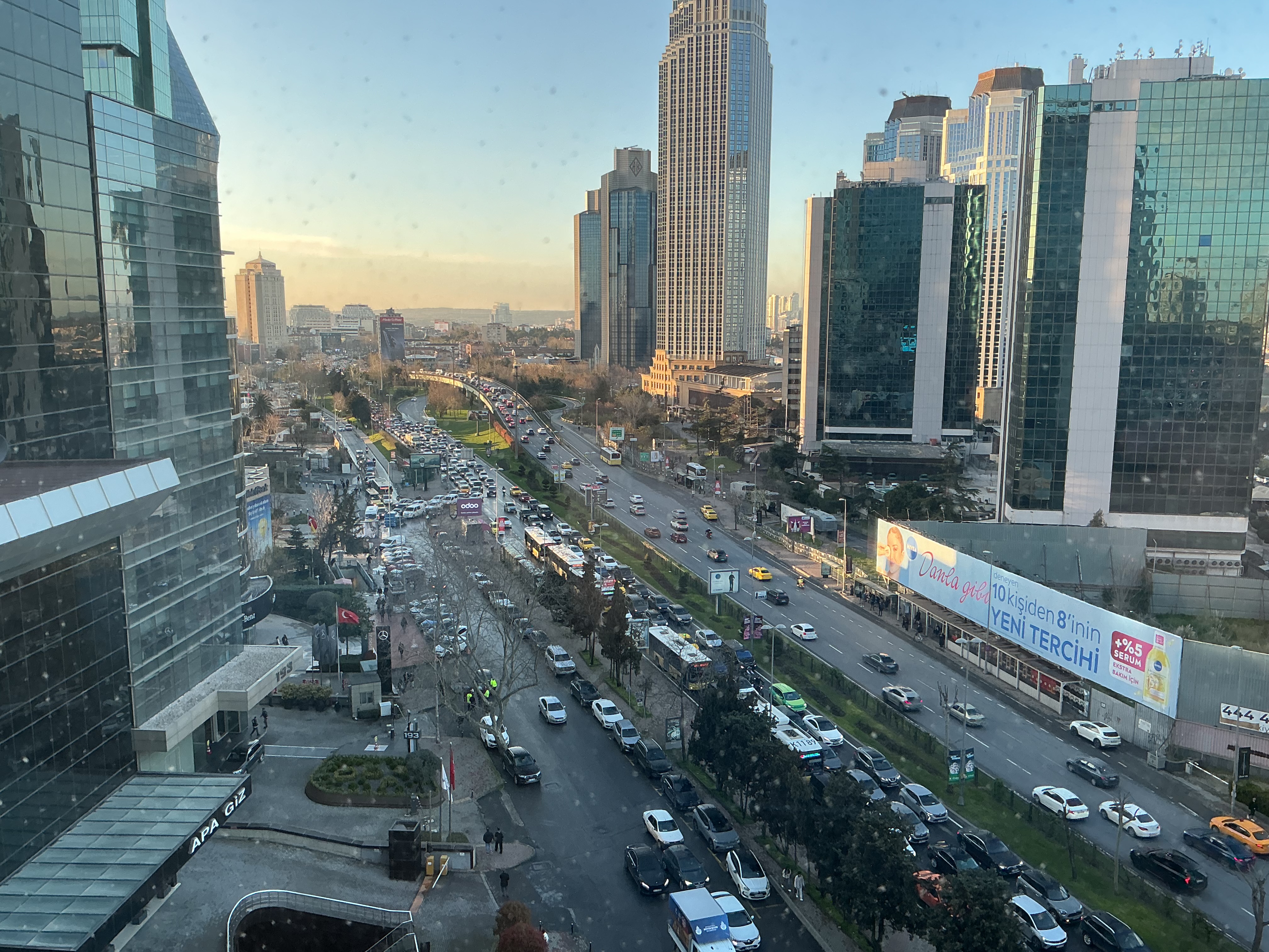 Arrived in Istanbul and deplaning, immigration, ETIAS, and baggage pick up procedures. Once again all went very smoothly until we looked for transport to get to our hotel at Levent. The bus to there didn’t depart the airport for another hour and a quarter so we were persuaded to take a bus to Taksim from where we could catch the Metro. It wasn’t, of course, quite that simple. After about an hour we arrived at Taksim in the rain and the Metro nowhere to be seen. Fortuitously an Uber driver turned up at that moment and we had a rather interesting discussion about how much it would cost us to get to our hotel. In the end he said he would do it for €17 and we said ‘let’s go’. He was was a card. Tried to teach us how to speak a number of words in Turkish all of which we failed but it was a bit like driving in a demolition derby, but no crashes! We joked about the state of the world – at one stage seeing the Trump Towers.