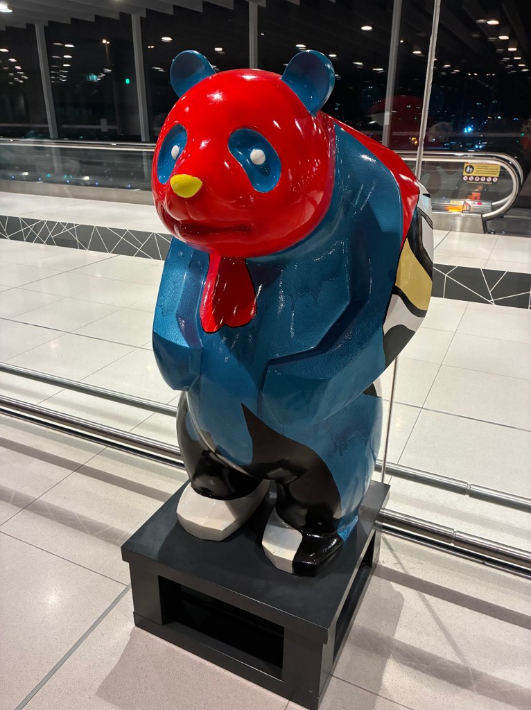 D then discovered that he’d neglected to pack enough undies, so part of our stretching walk was to a nearby shopping mall – T’s least favourite activity. There were two close by – the up market one, and the cheap one. We went into both – through security screening. Wandered around the cheap mall (actually not really cheap) and successfully accomplished mission, along with some snacks and beers. Obviously recognised, as we were waved through the security screening on return.
