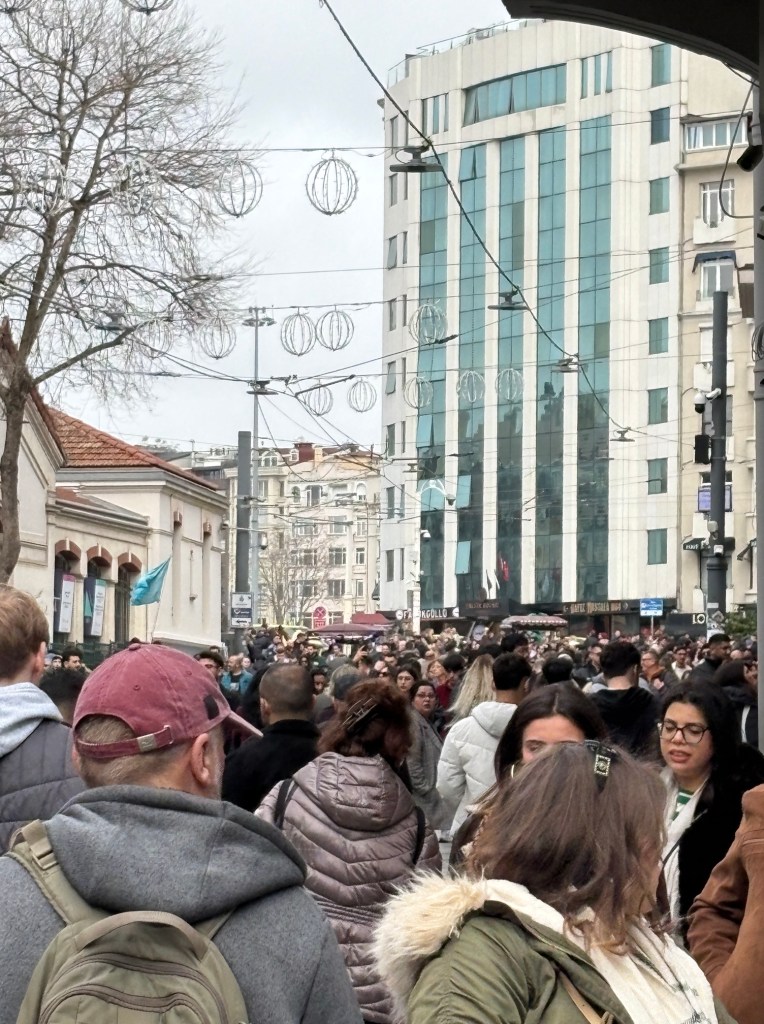 Took a walk along the breezy waterfront, but it was quite chilly and not overly appealing so strolled up to Istiklal Avenue to join huge crowds, we were going against the flow! Apparently, this pedestrian street is always a sea of humanity.