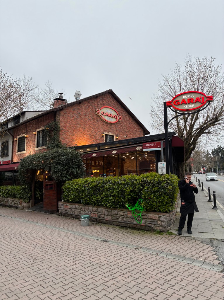 Back at our hotel question of the day was ‘dinner’? From our hotel window we’d noticed a couple of quiet treed restaurants behind the mosque opposite, so wandered down on spec. We dined on the (allegedly) ‘world famous’ kebab at Garaf restaurant ( a menu limited to beef or chicken on flat bread) & started with the old lentil soup. A glass of something would have been nice but it was an unlicensed eatery, so tea was the go.