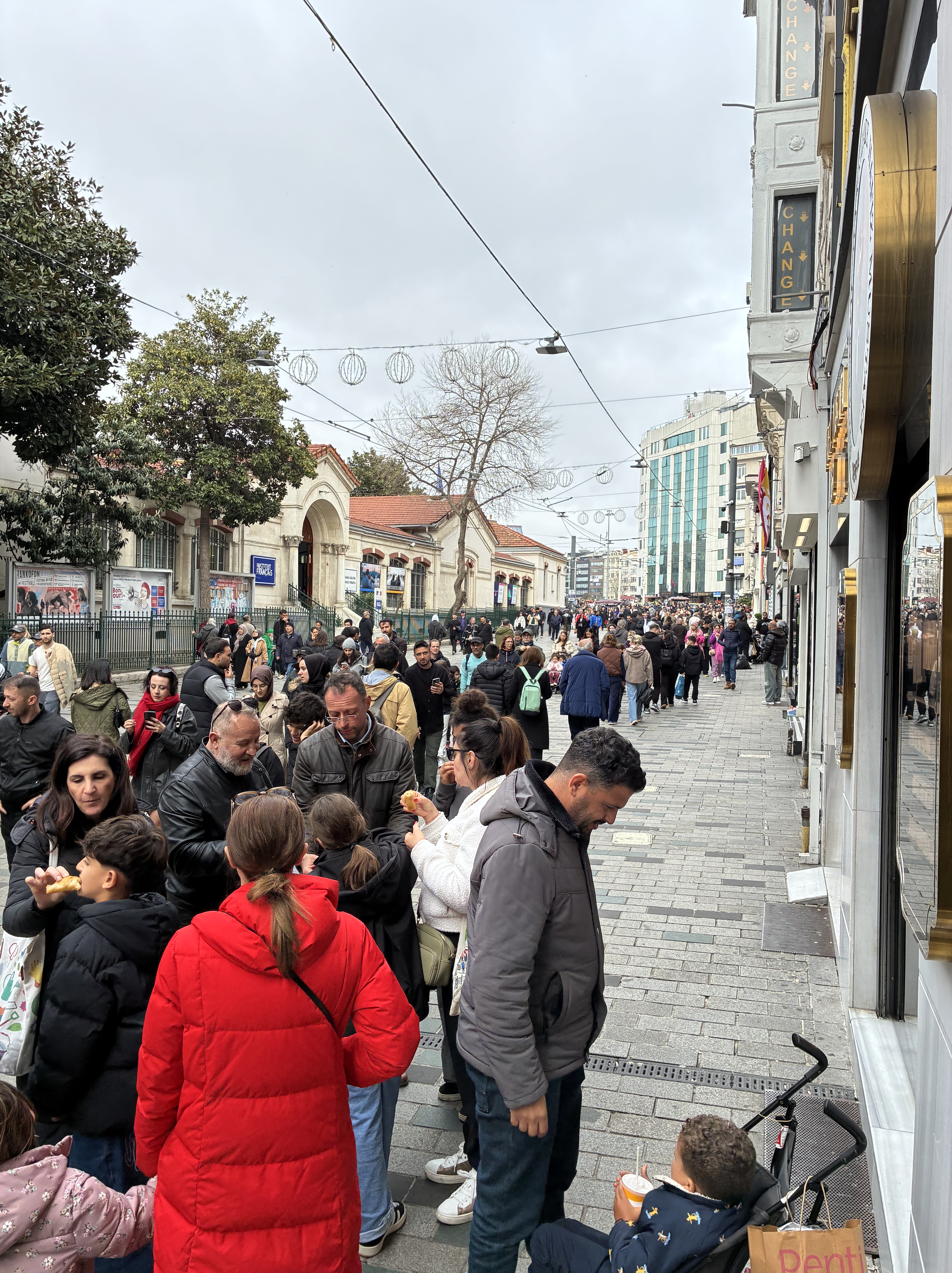 Took a walk along the breezy waterfront, but it was quite chilly and not overly appealing so strolled up to Istiklal Avenue to join huge crowds, we were going against the flow! Apparently, this pedestrian street is always a sea of humanity.