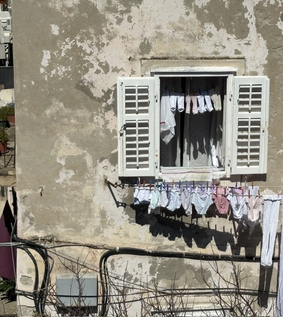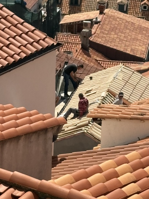 At 40 euros for a once-only, one-way stroll, it takes us much of the day. And it was terrific. Being a one-way circuit reduces congestion & despite whichever cruise ship was in today, there was no real pressure. Views across the rooftops were splendid. It was a perfect day for: roof repairs, peeking into backyard terraces, admiring the vege-patches, watching the kayakers and jetty-jumpers, and drying the undies & socks.
