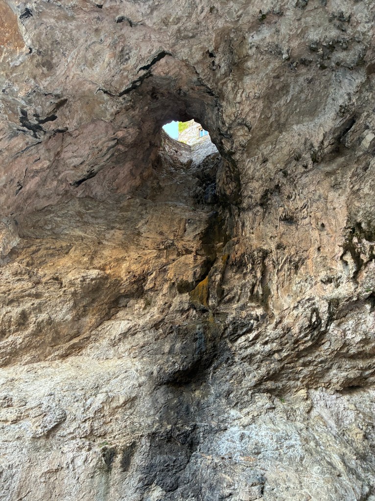 Our lower halves drenched, we landed, shivered as we dashed as best we could up, up, up to our ‘home’, a hot shower & a glass of rose. A worthwhile experience, followed by a lovely chicken dinner.