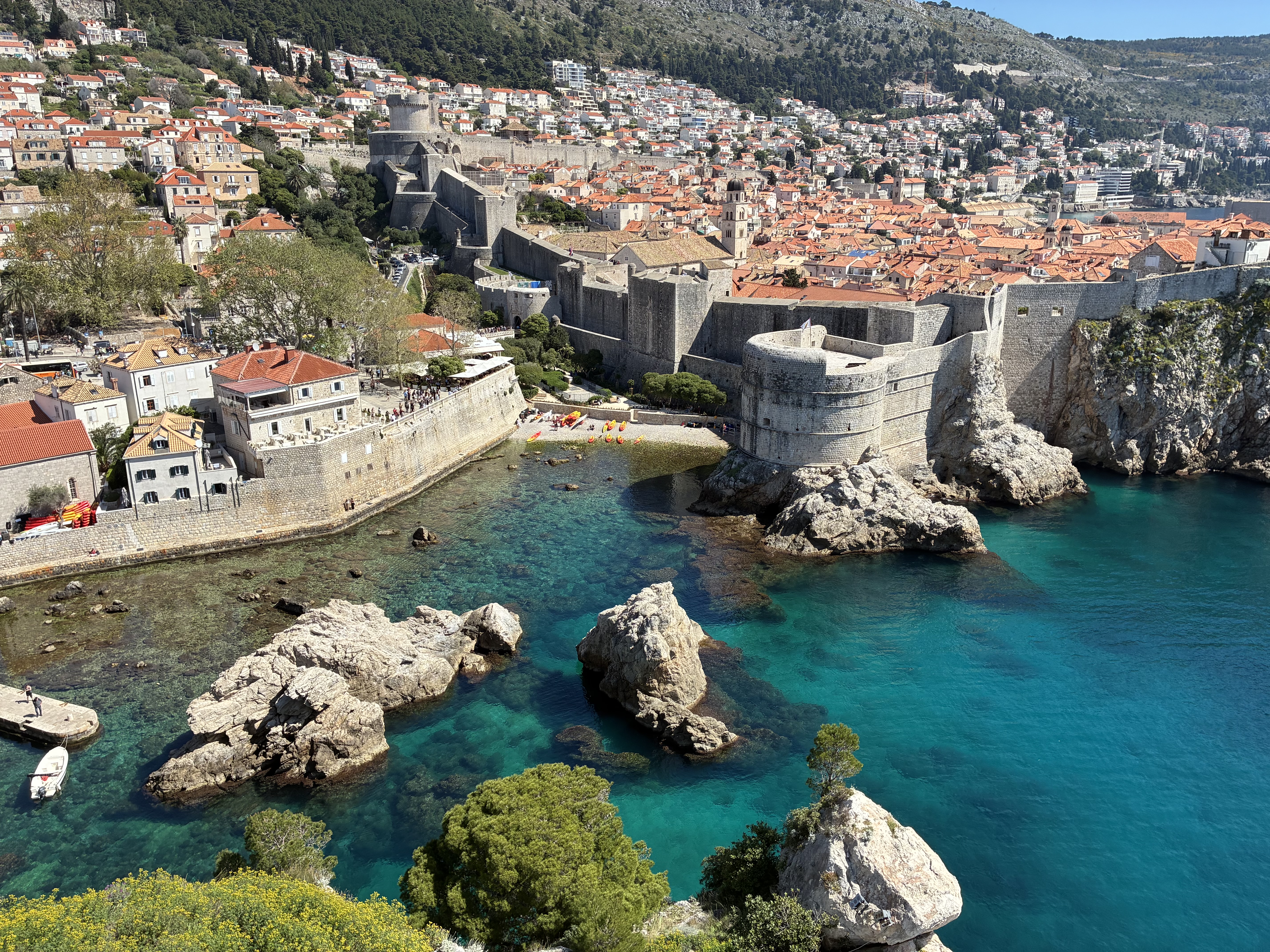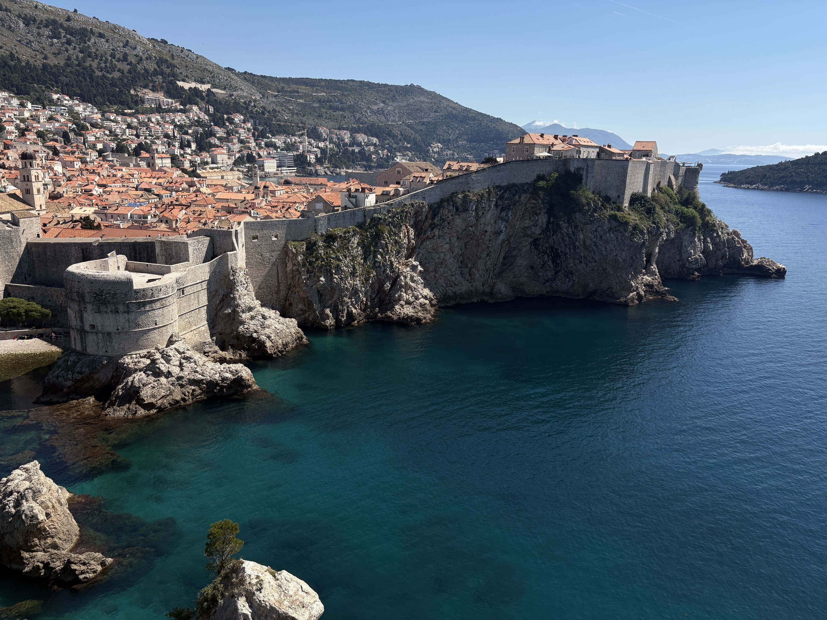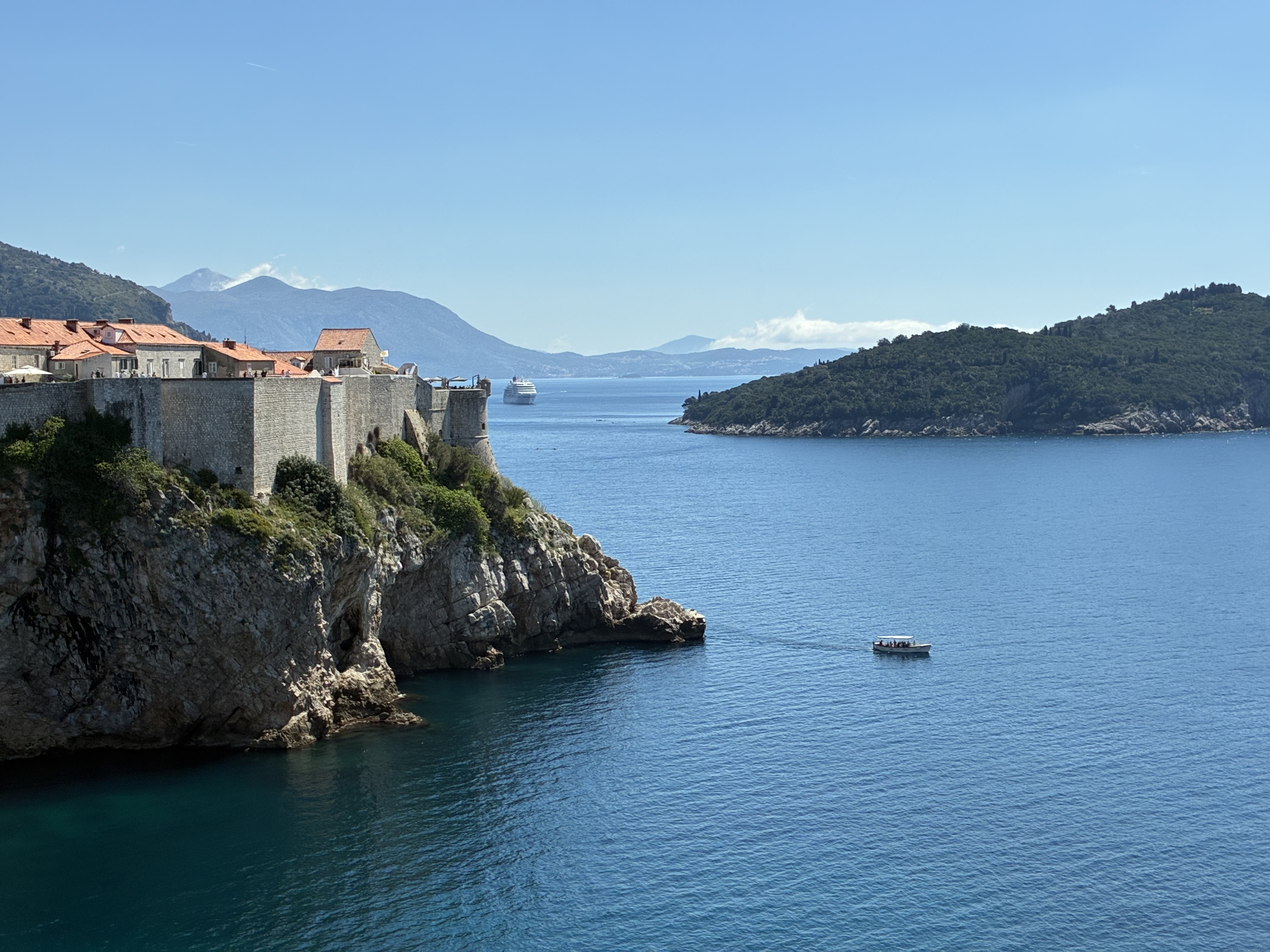 First visit is to Fort Lovrjenac, which is outside the walls of the Old Town. A relatively easy walk – but still lots of stairs, mostly going down. Finding the entry was a bit of a challenge but eventually got there: the paper maps lack detail, and Apple Maps seems to delight in misdirecting D, just like in Spain. Along the way we met Clifford and Oswald, their big sister and their mum, holidaying from Jo’burg. The boys were much more interested in finding tiny hermit crabs than dealing with steps and a stone fort. Mum was originally from Pinaroo (SA); she home-schools the three & recommended visiting Bosnia- Herzegovina (just over the border) …T will think about it.
