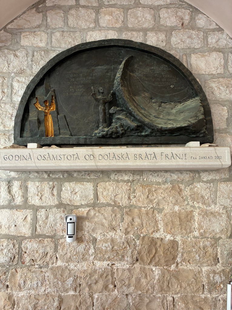 The walk continued around to the Franciscan Monastery where the steps were being swept; there’d been a wedding and flower petals & rice needed cleaning up.