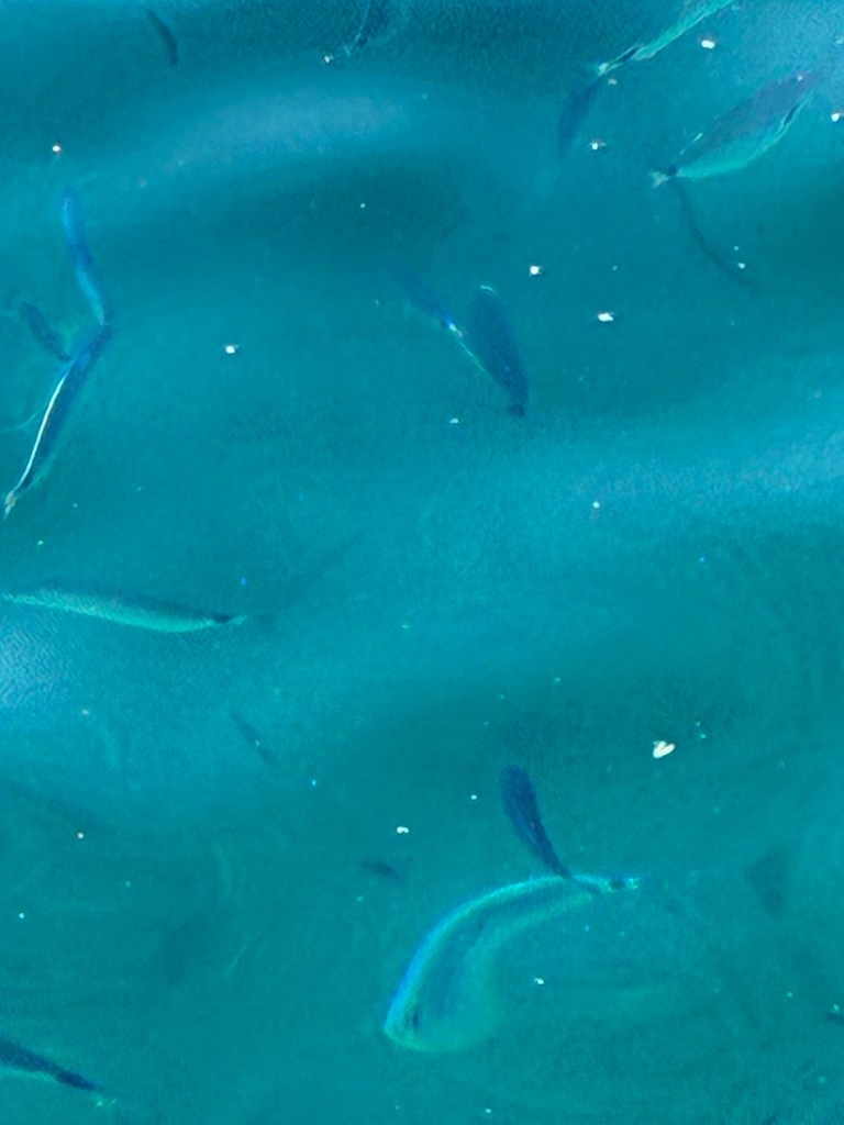 We noticed a guy throwing baguettes into the water…yes, he was feeding the fish (& later, the pigeons would have their turn).