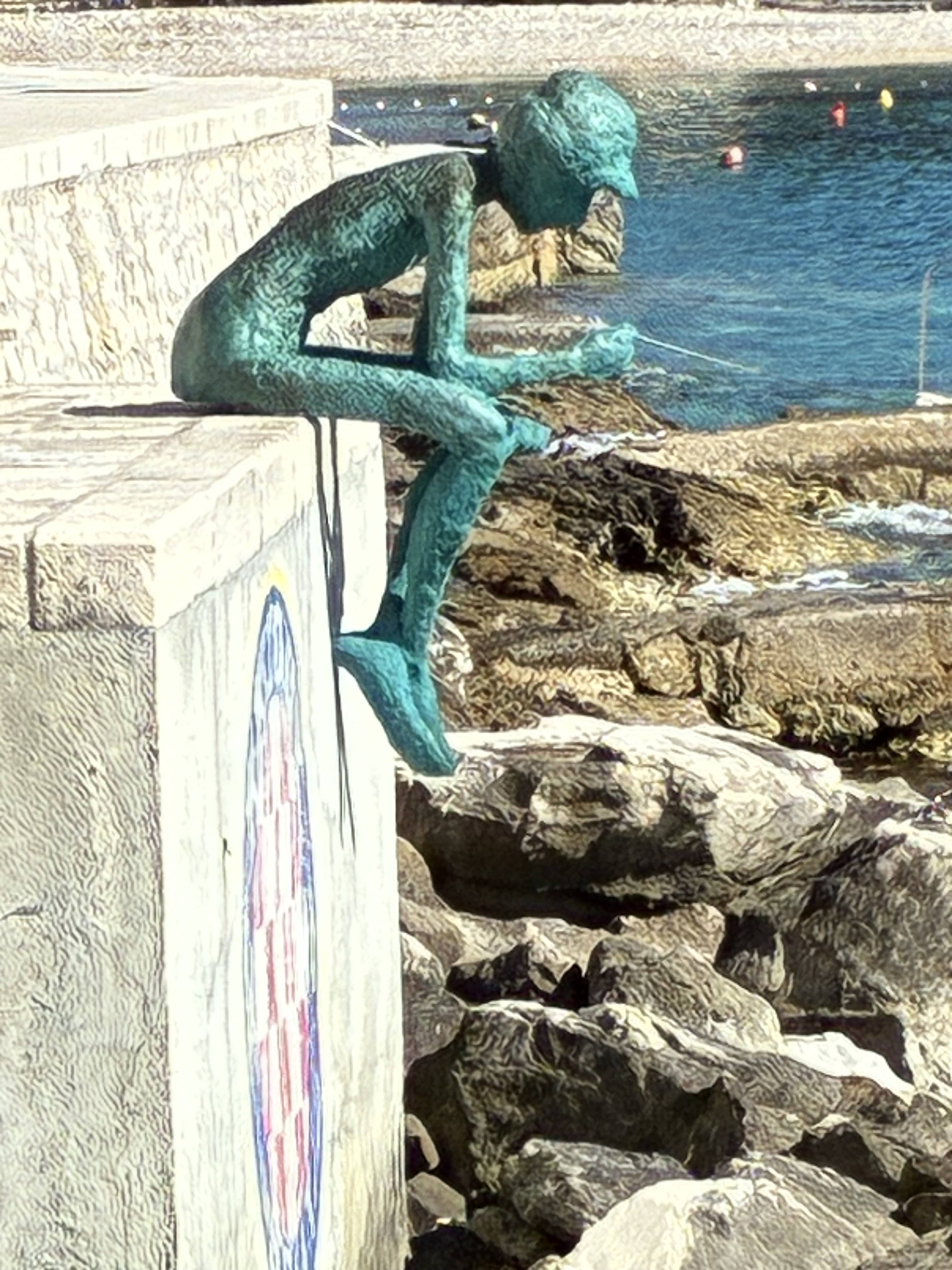 We noticed a guy throwing baguettes into the water…yes, he was feeding the fish (& later, the pigeons would have their turn).