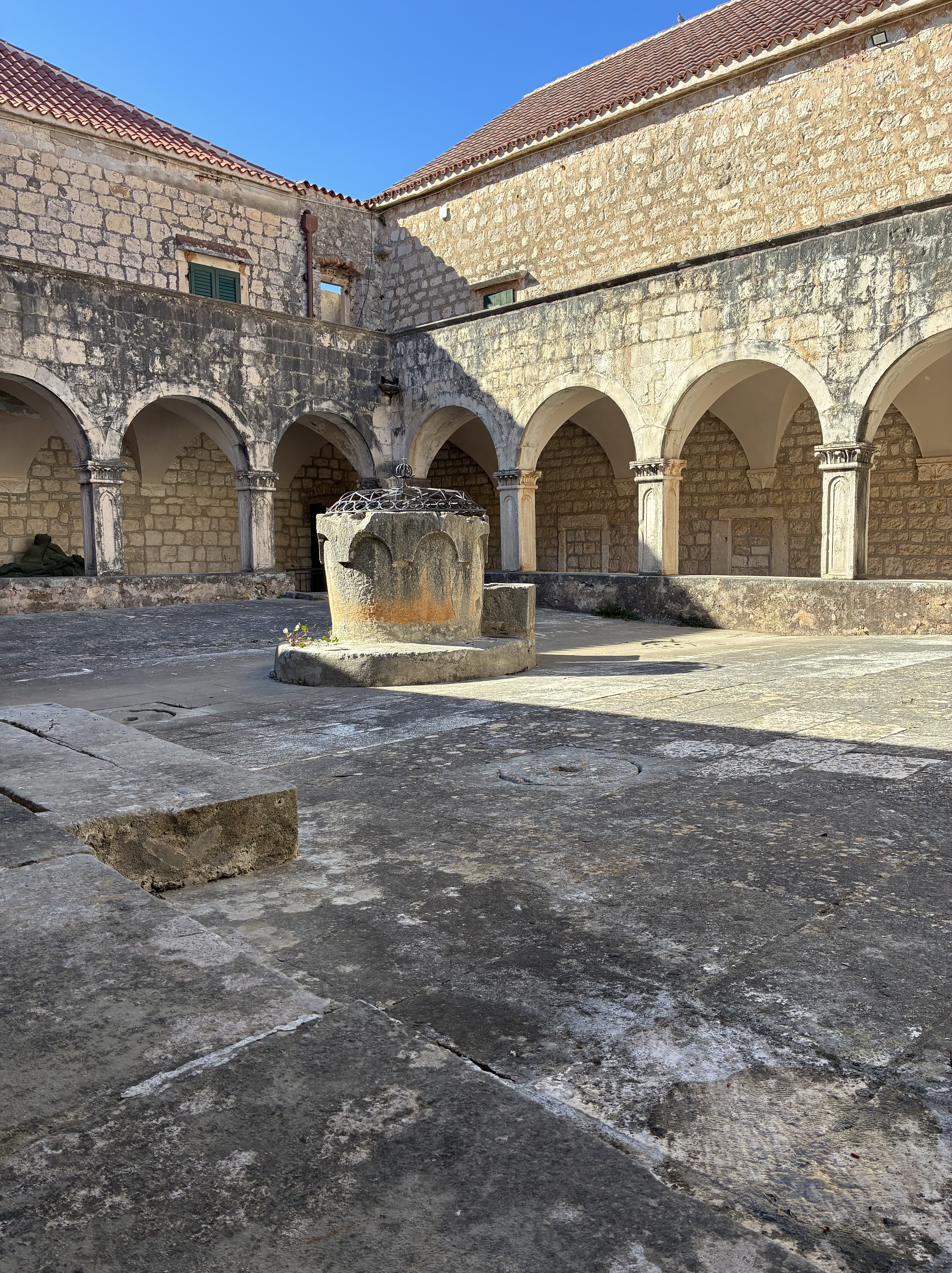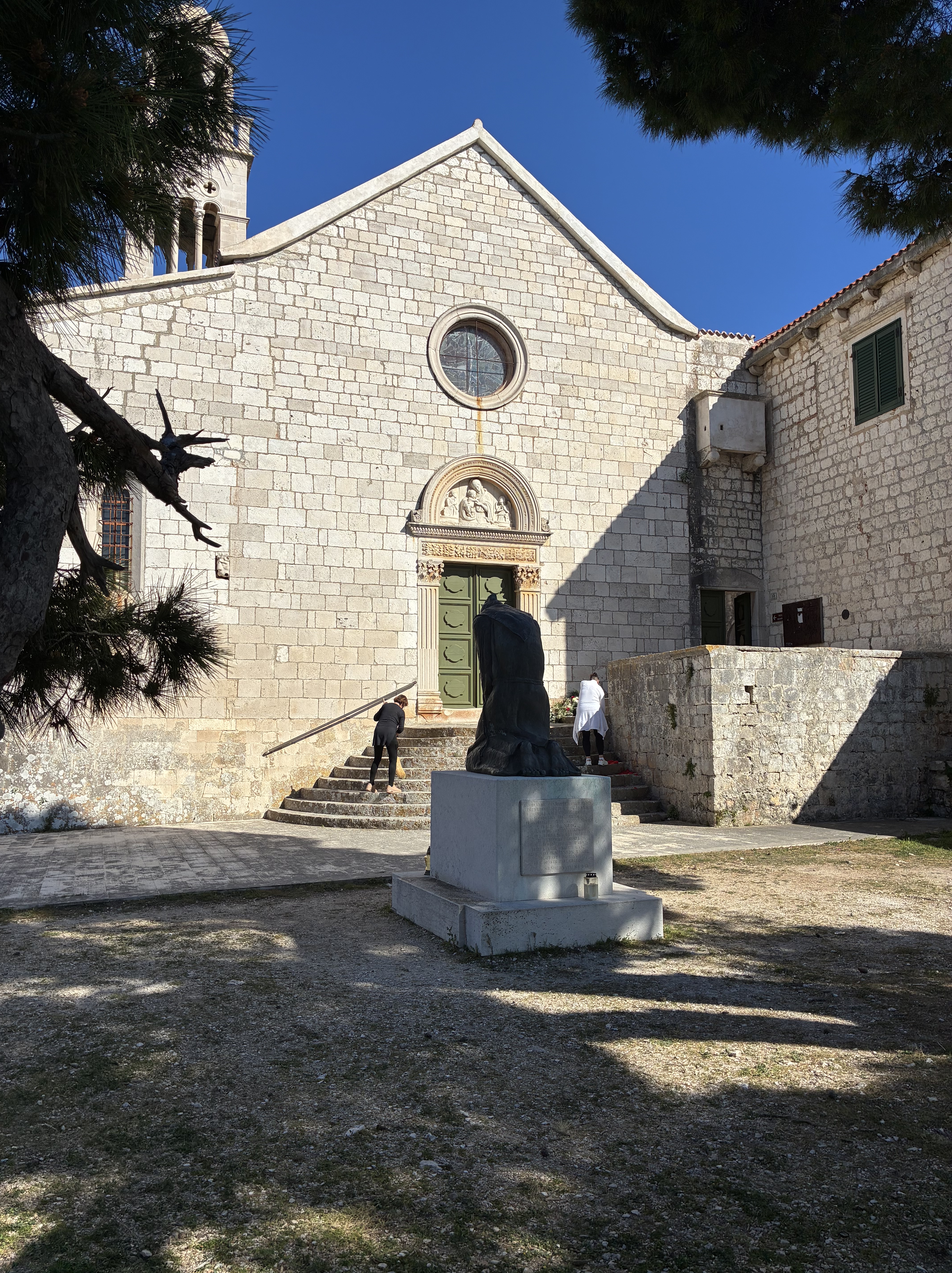 The walk continued around to the Franciscan Monastery where the steps were being swept; there’d been a wedding and flower petals & rice needed cleaning up.