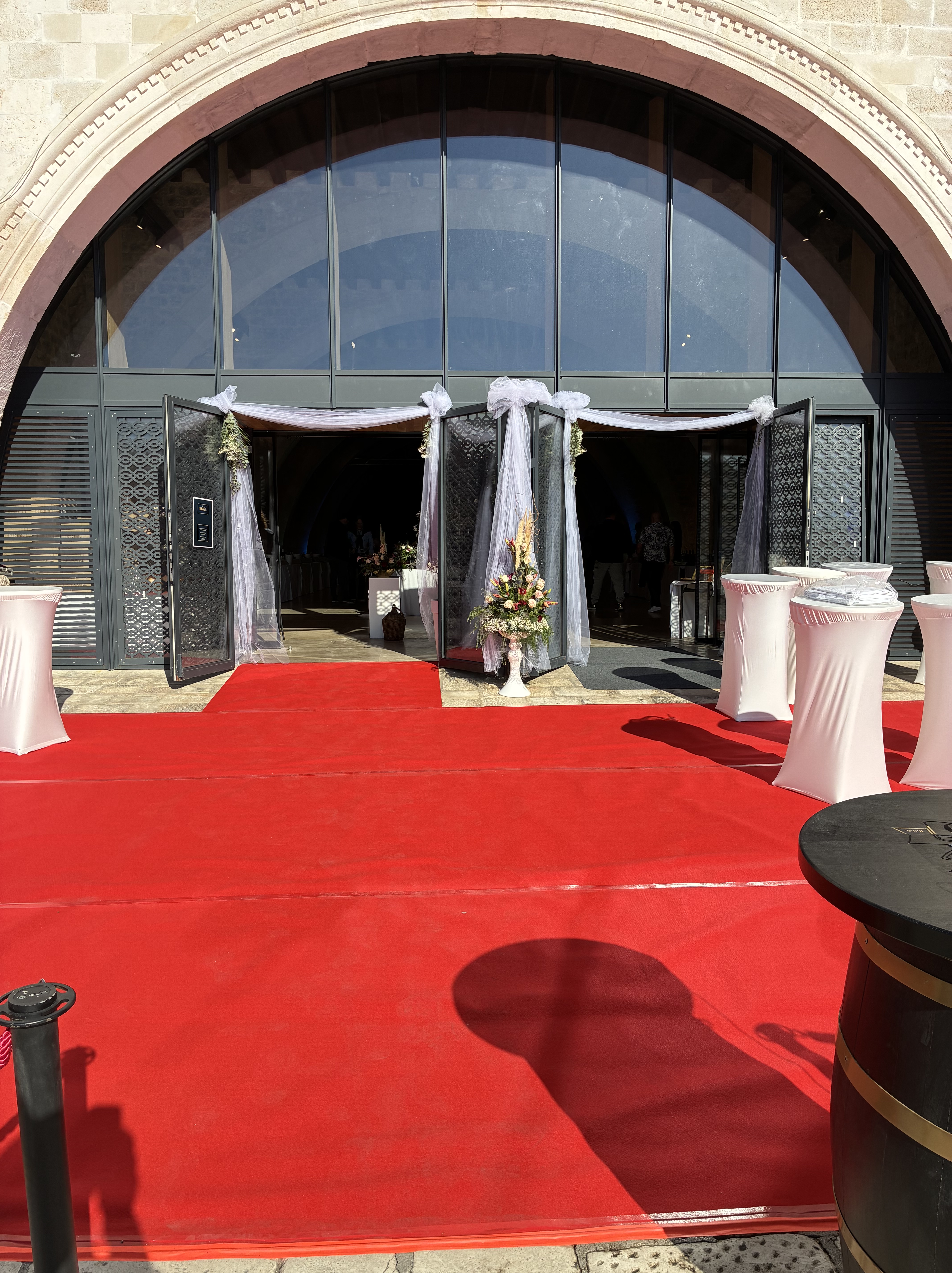 Back toward the town square: we’d noticed earlier in the day that an event was being prepared in the Arsenal; with flowers and white organza draped, white cloths over tables, it looked like a serious Saturday wedding would happen. By afternoon, the lamb spits were being finalised & the guys were rewarding themselves with glasses of white & loud chatter…it was actually the Hvar Wine Festival event, starting at 5pm.