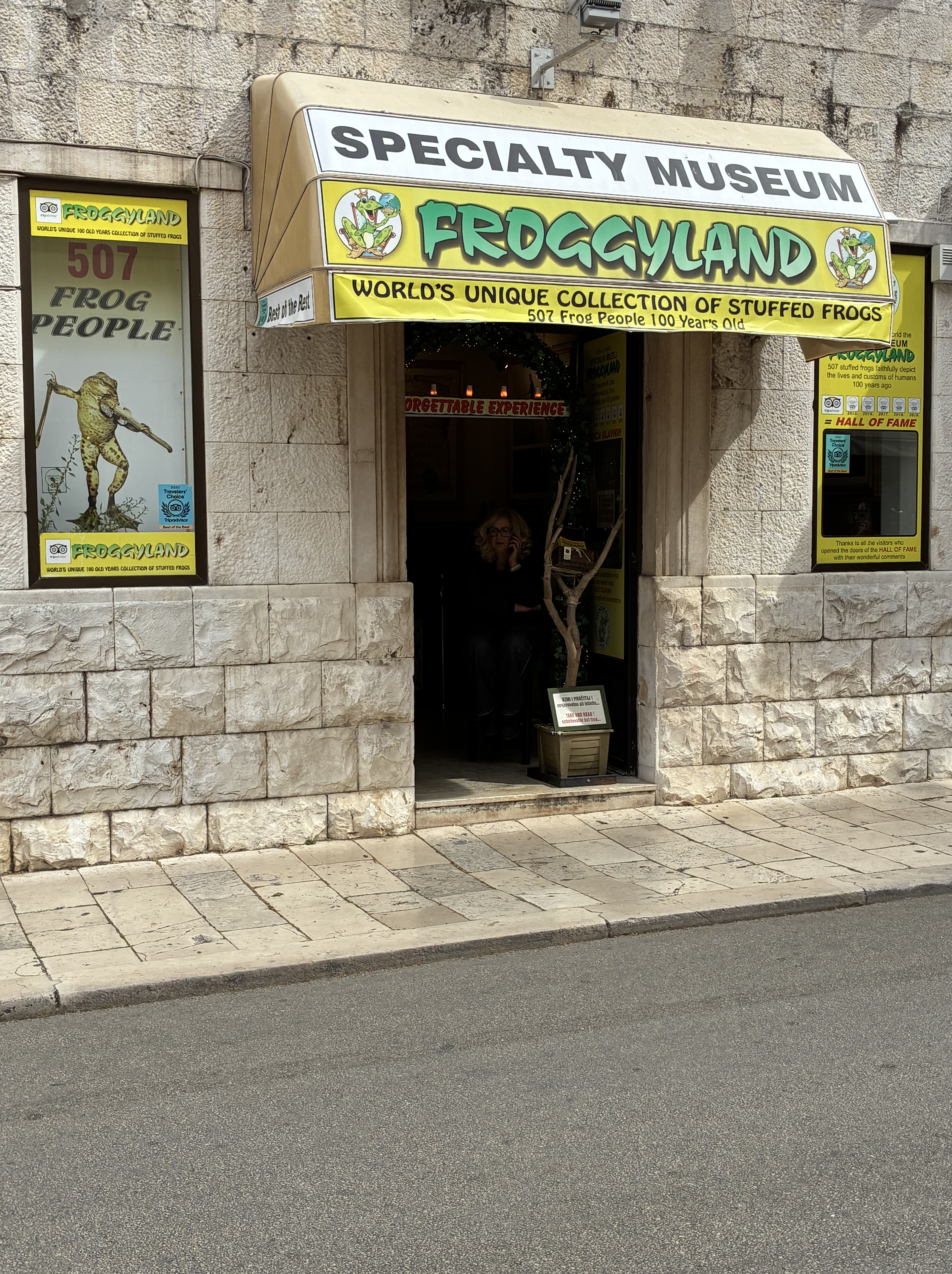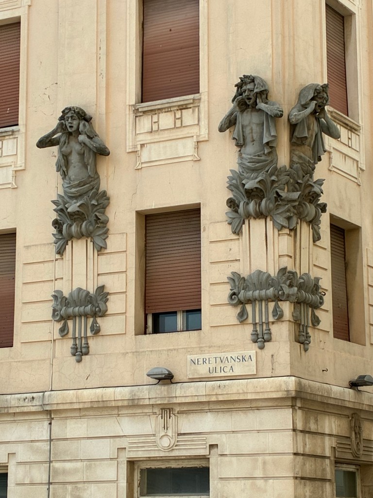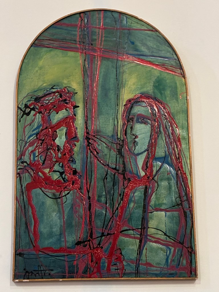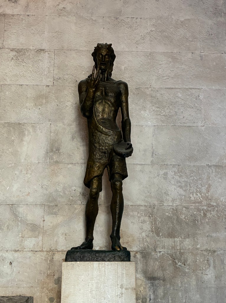 The Art Gallery had a couple of eye-catching exhibitions, but the Little gallery of Split City Museum had a free display of the works of two artists, Karin Grenc and Ana Marija Botteri, titled Ecce Homo, which focused on the pain of Christ and the common man. The young man attending this exhibition confessed to knowing nothing about art; he was a ‘student just minding the shop.’ We suggested that he make up a story about the artworks: the pain of Christ, the common man & then he added, ‘& the two artists’.