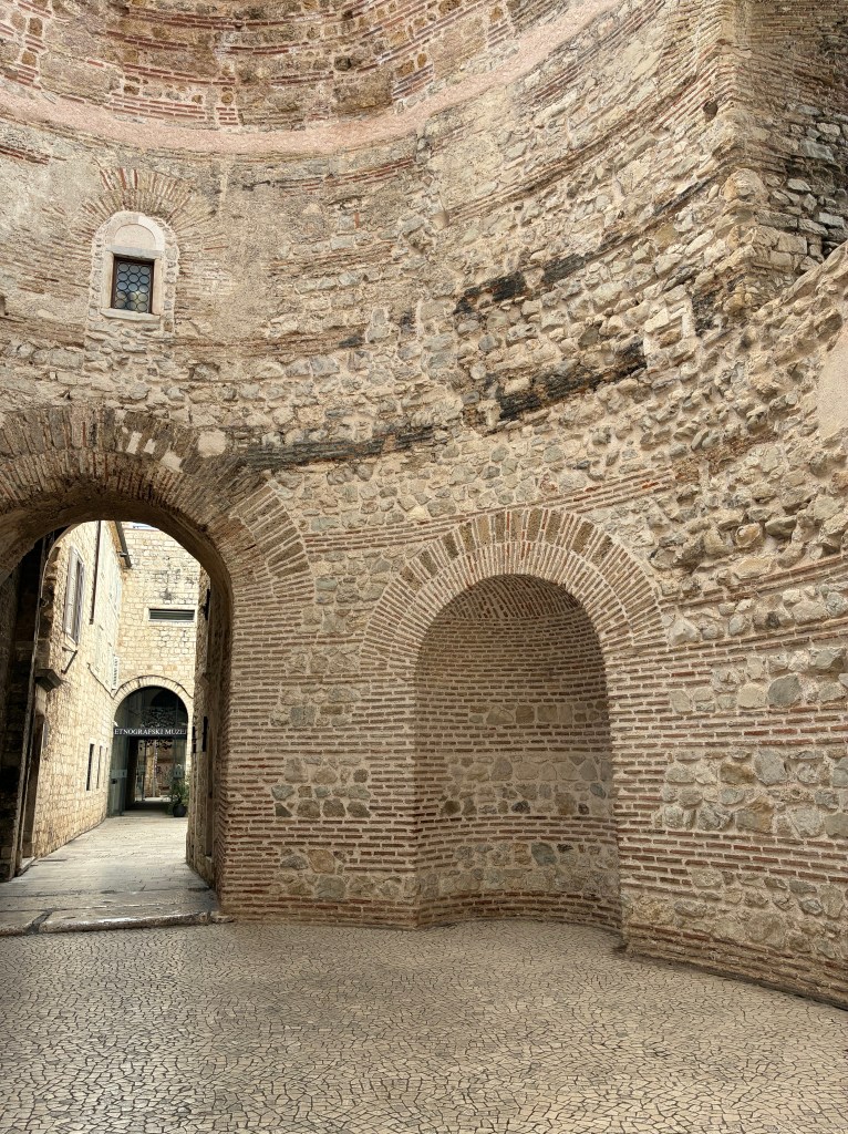 Split old town is basically the Diocletian Palace, a mix of ancient and very, very ancient STONE: walls, columns, arches, cornices, architraves, some impressive statues, …mostly on fairly flat ground.
