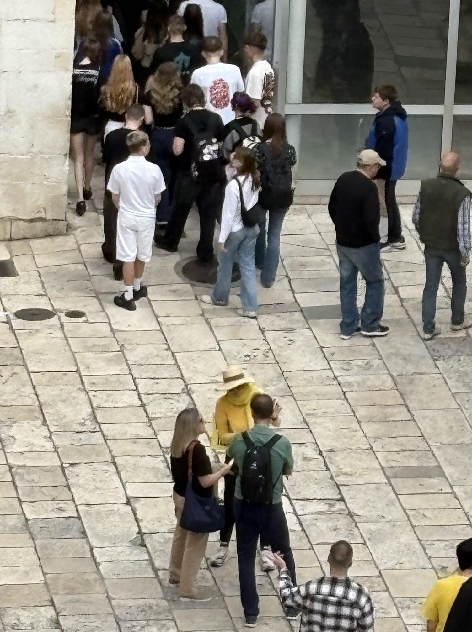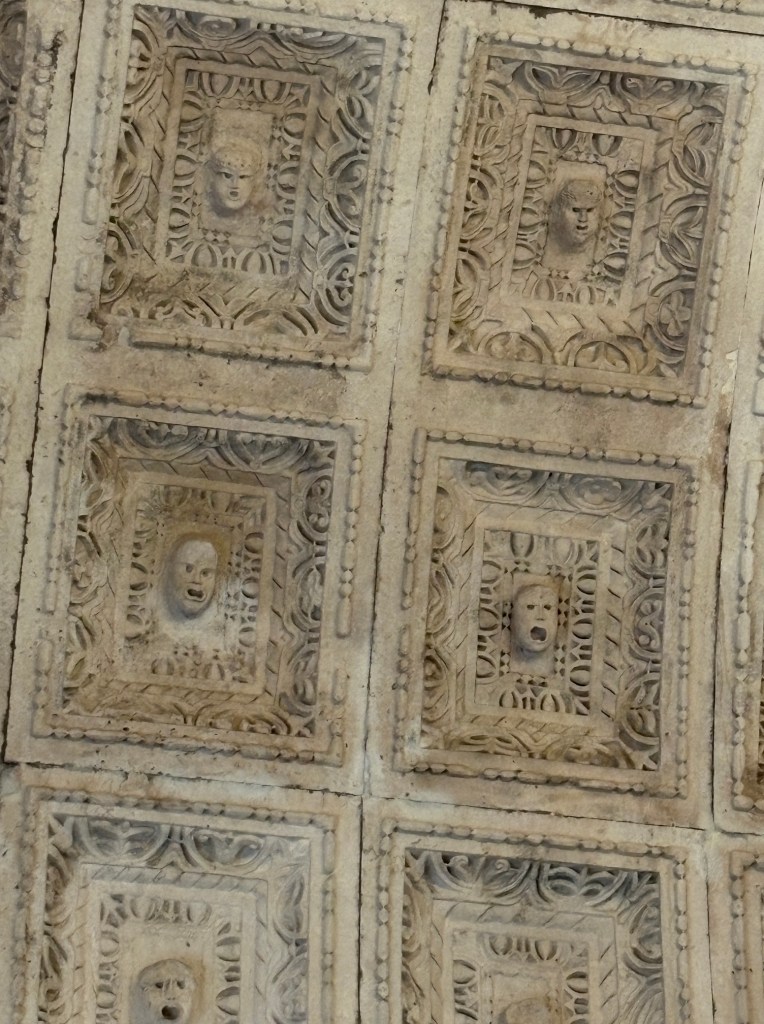 We inevitably encountered tour groups, but there was no real crush, although you certainly didn’t get in their way! The Yellow walking tour lady in the Peristyle (interior courtyard) was trying hard to get customers, seemingly unsuccessfully.