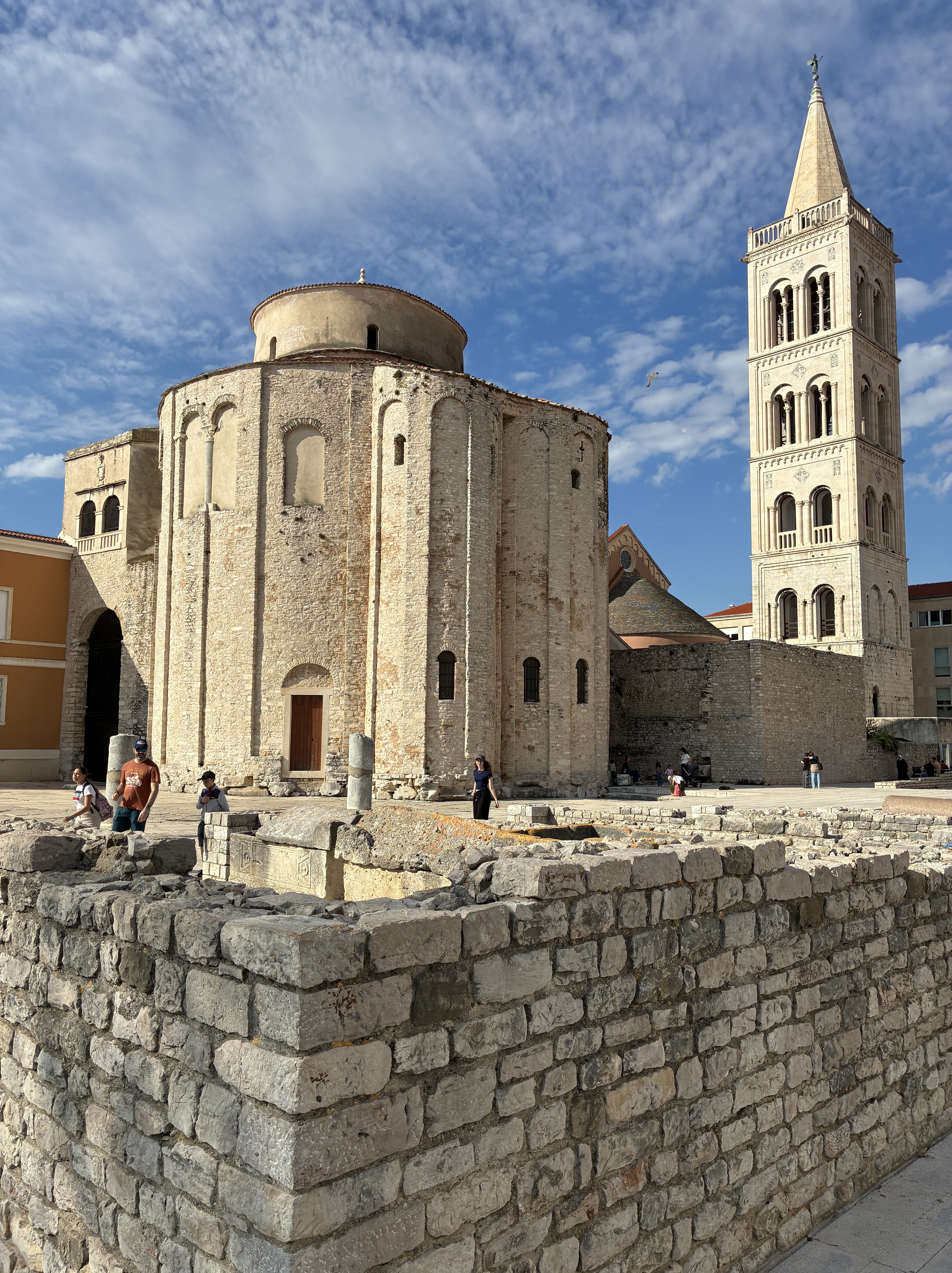 In the late afternoon it was back to the waterfront. Dropped in by chance to the tourist office to be greeted by a huge smile and enthusiasm by an engaging young woman – somewhat surprisingly, that has not always been the case. We took her advice, following the marked map past the usual churches and cathedrals (there are 18 according to the old town tourist map) to arrive at the wave organ: the sea hitting the concrete quay produces the melodic sound…just a pity that a whinging child and general chatter interfere with a meditative albeit repetitive piece (D thought of Bolero without the build up).