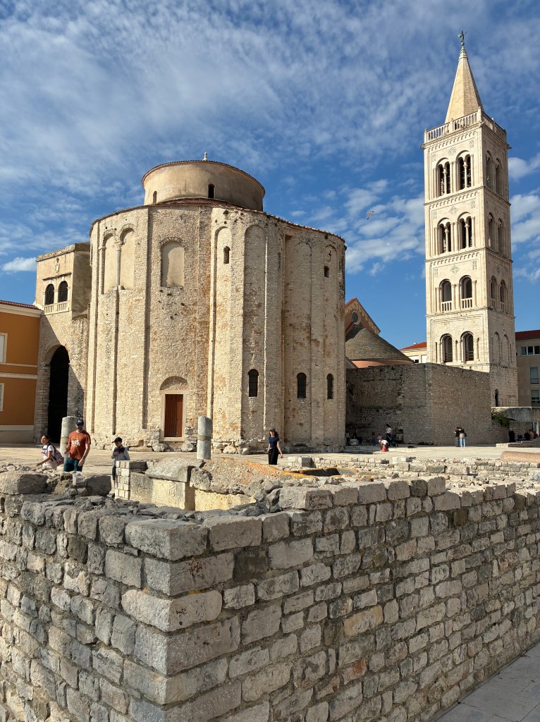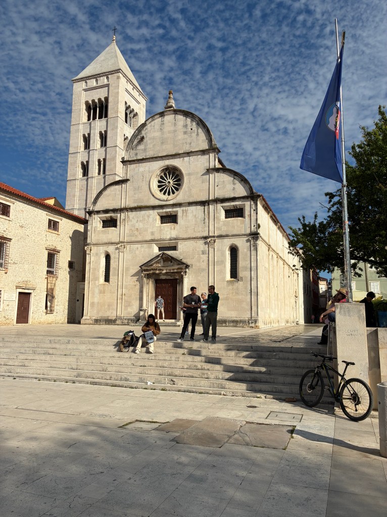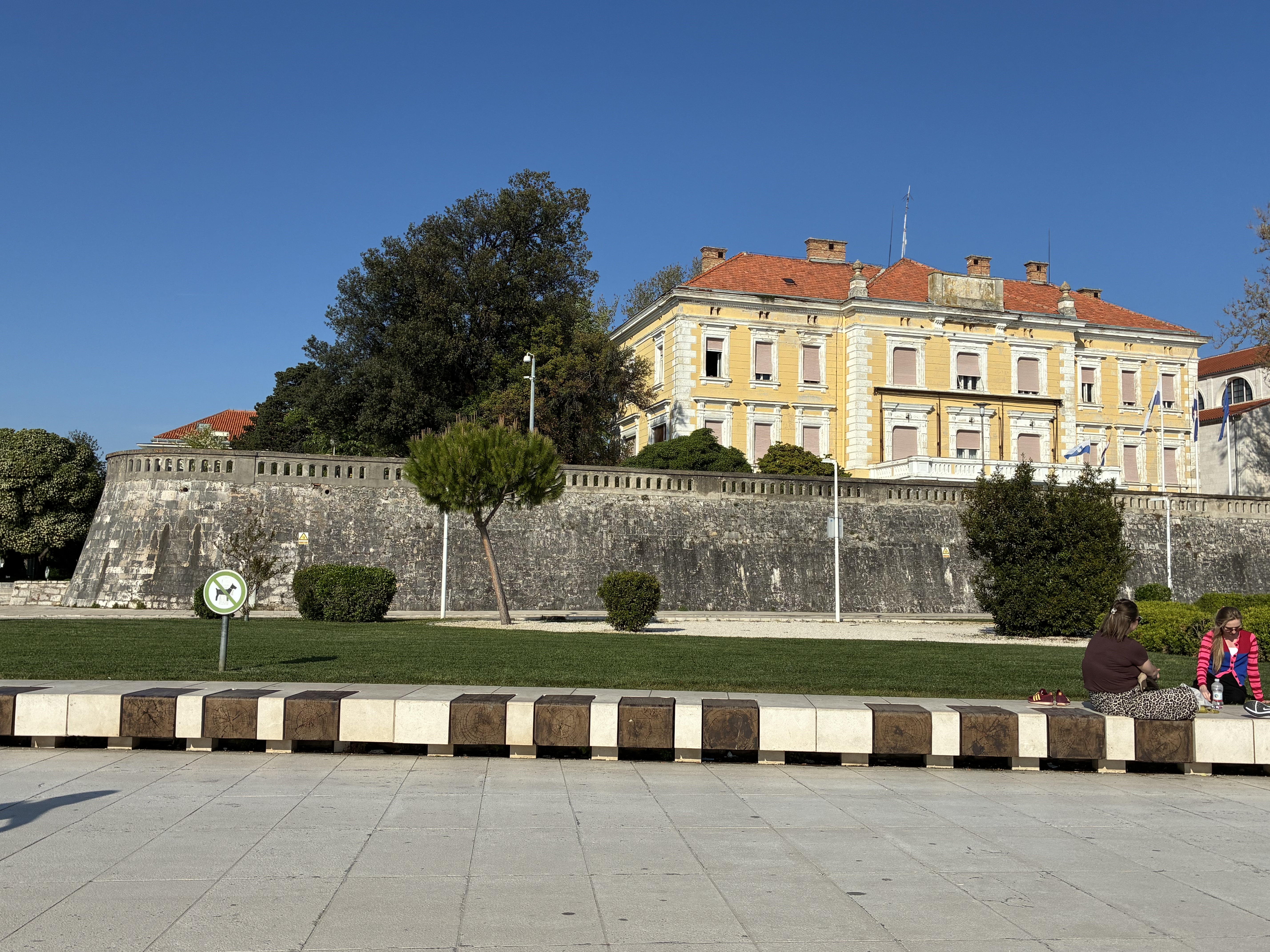 None of the forecast showers, no pressure to leave by 1000 – although we were ready -so an easy departure with suitcases and down to the bus station for the next leg along the coast to Zadar. Even time for a takeaway coffee on the waterfront, observing with great amusement the unrequited love of the male pigeons. And some sympathy.