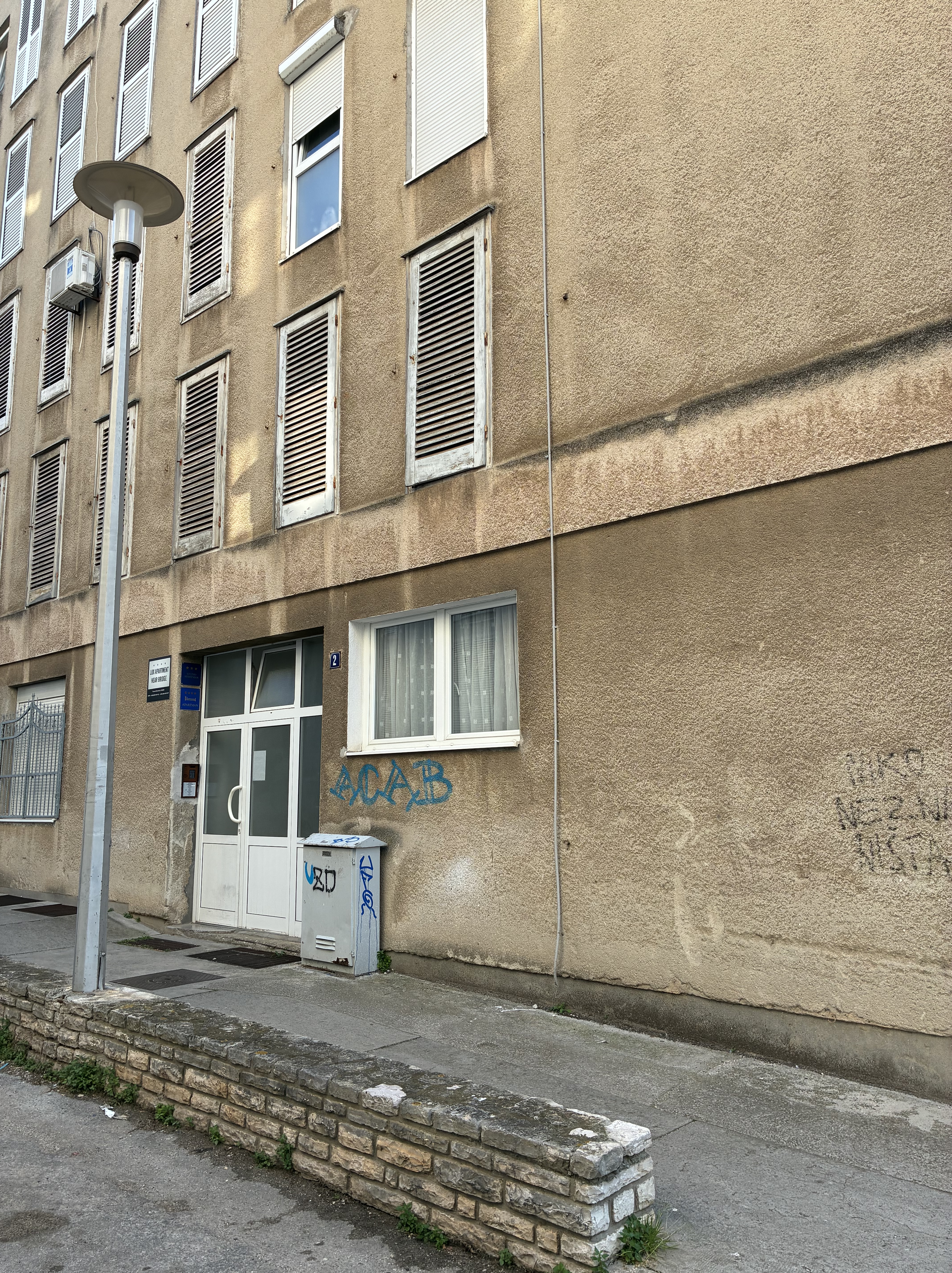 The coast road is a strip of urban apartments, small shops, lots of bakeries (pekara), autokamps (empty, as it’s not yet the season. But would be perfect for Crans!), small olive gardens and stones. The water, nearby islands & boats are ever-present. Not much of a beach.